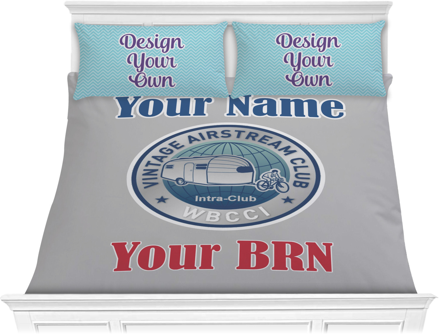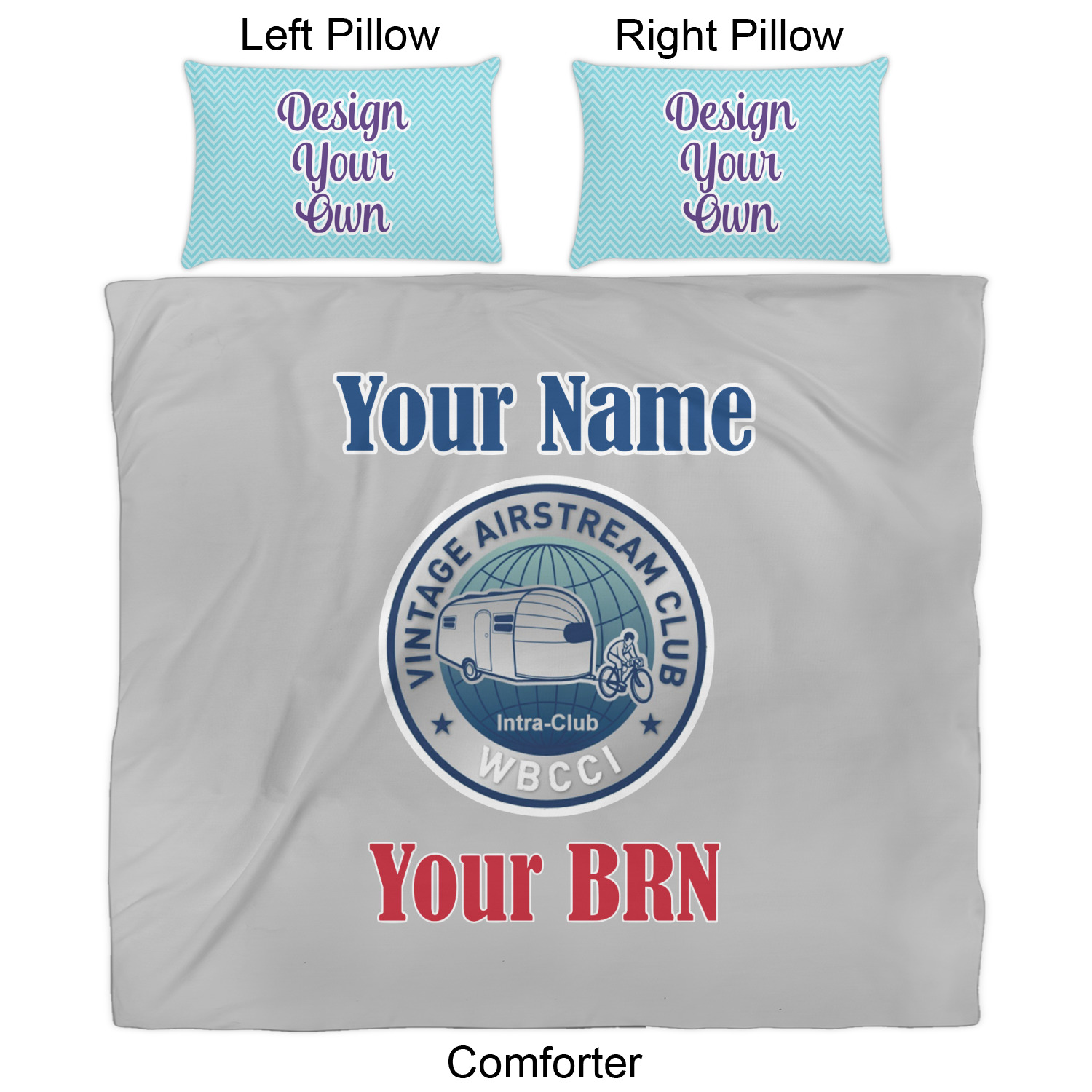 We have hundreds of different design templates for you to choose from Each design can be customized to your exact specifications. Not only can you customize the comforter, but you can also customize each pillow sham e.g. for a queen comforter set you have have Mr & Mrs pillow shams with the last name on comforter.