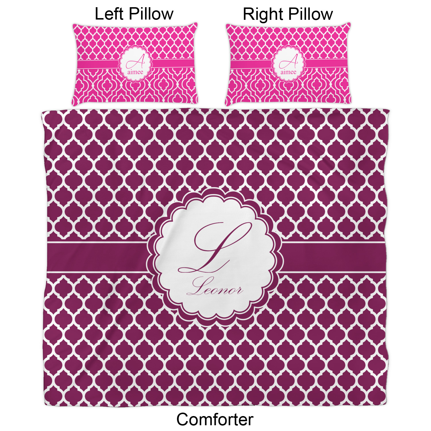 We have hundreds of different design templates for you to choose from Each design can be customized to your exact specifications. Not only can you customize the comforter, but you can also customize each pillow sham e.g. for a queen comforter set you have have Mr & Mrs pillow shams with the last name on comforter.