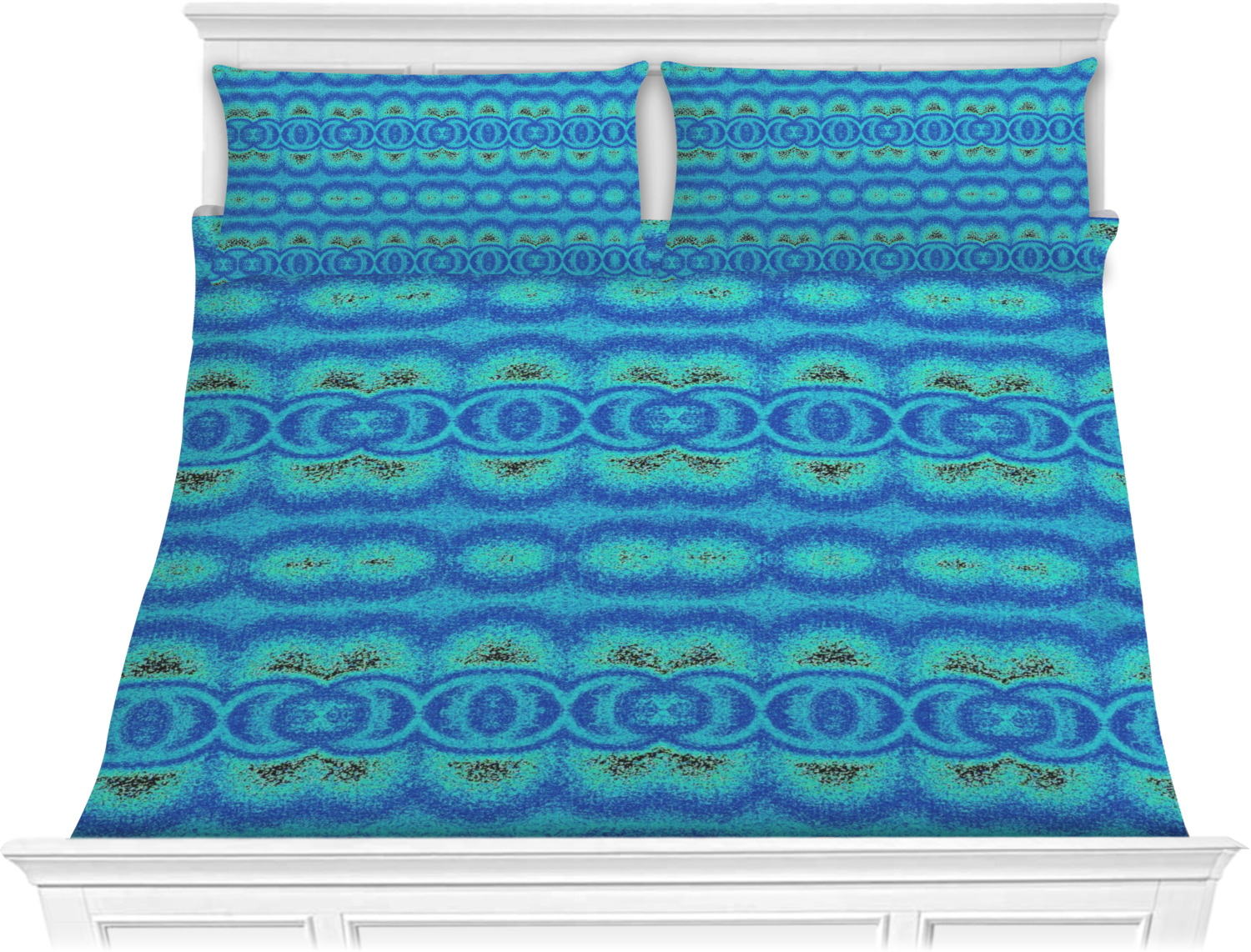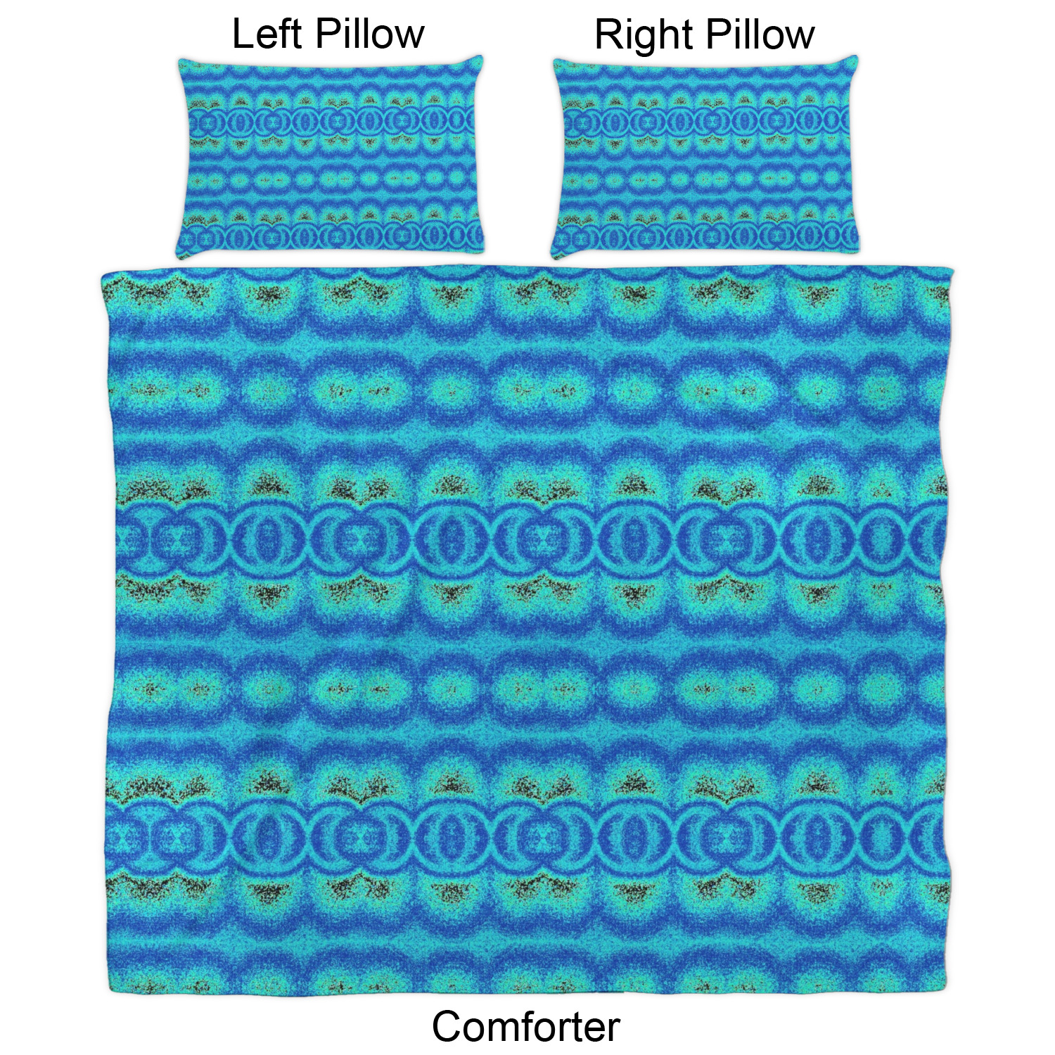 Both, the comforter and shams are digitally printed; all the fabric is then cut and sewn to make your custom comforter or comforter set.