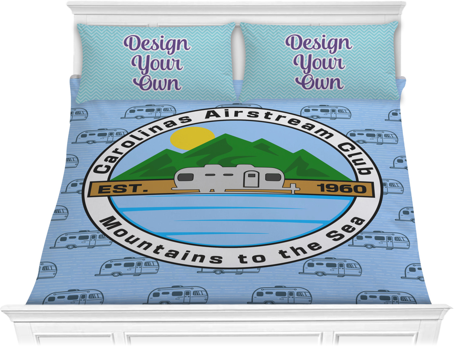 We have hundreds of different design templates for you to choose from Each design can be customized to your exact specifications. Not only can you customize the comforter, but you can also customize each pillow sham e.g. for a queen comforter set you have have Mr & Mrs pillow shams with the last name on comforter.