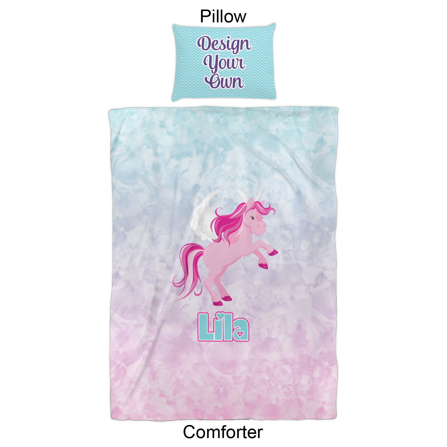 We have hundreds of different design templates for you to choose from Each design can be customized to your exact specifications. Not only can you customize the comforter, but you can also customize each pillow sham e.g. for a queen comforter set you have have Mr & Mrs pillow shams with the last name on comforter.