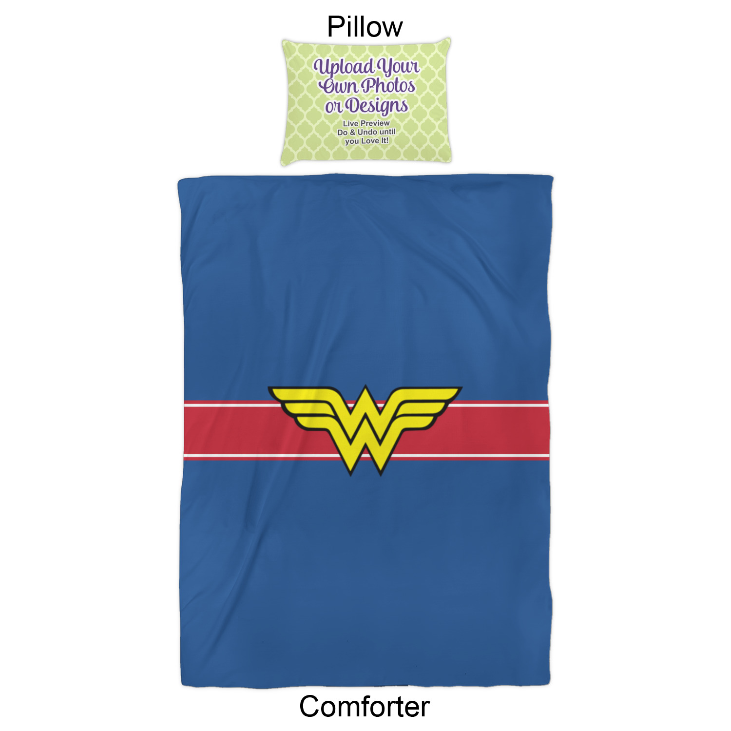 We have hundreds of different design templates for you to choose from Each design can be customized to your exact specifications. Not only can you customize the comforter, but you can also customize each pillow sham e.g. for a queen comforter set you have have Mr & Mrs pillow shams with the last name on comforter.