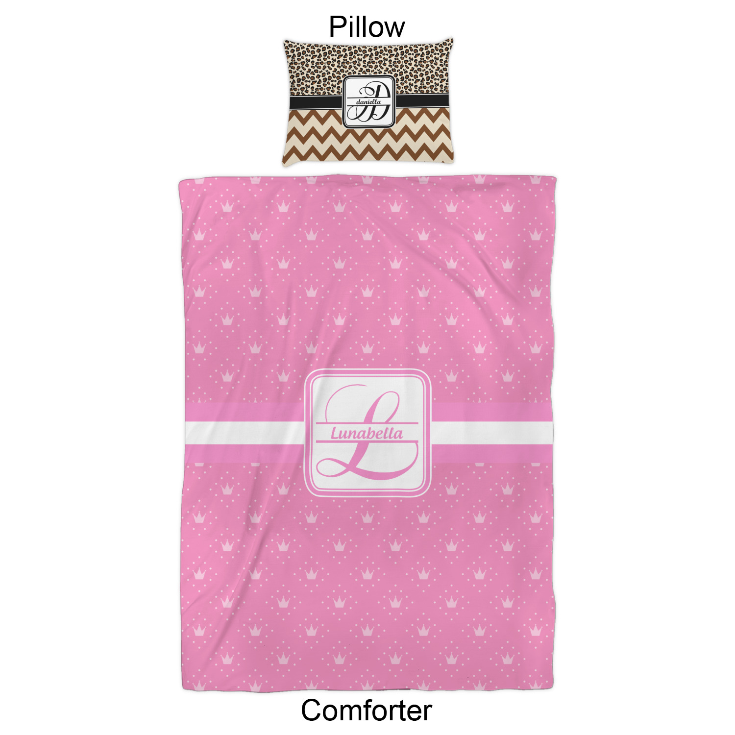 We have hundreds of different design templates for you to choose from Each design can be customized to your exact specifications. Not only can you customize the comforter, but you can also customize each pillow sham e.g. for a queen comforter set you have have Mr & Mrs pillow shams with the last name on comforter.