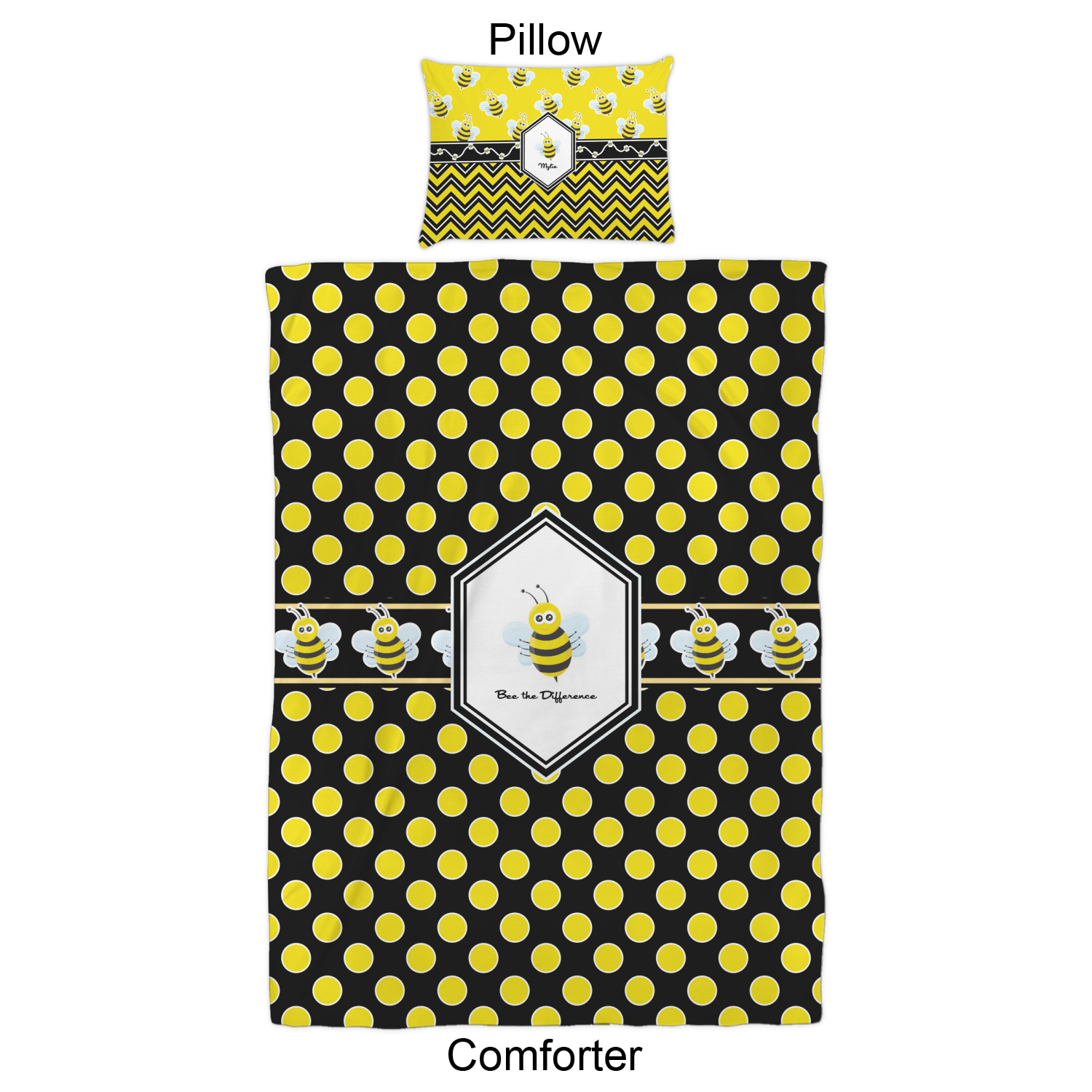 We have hundreds of different design templates for you to choose from Each design can be customized to your exact specifications. Not only can you customize the comforter, but you can also customize each pillow sham e.g. for a queen comforter set you have have Mr & Mrs pillow shams with the last name on comforter.