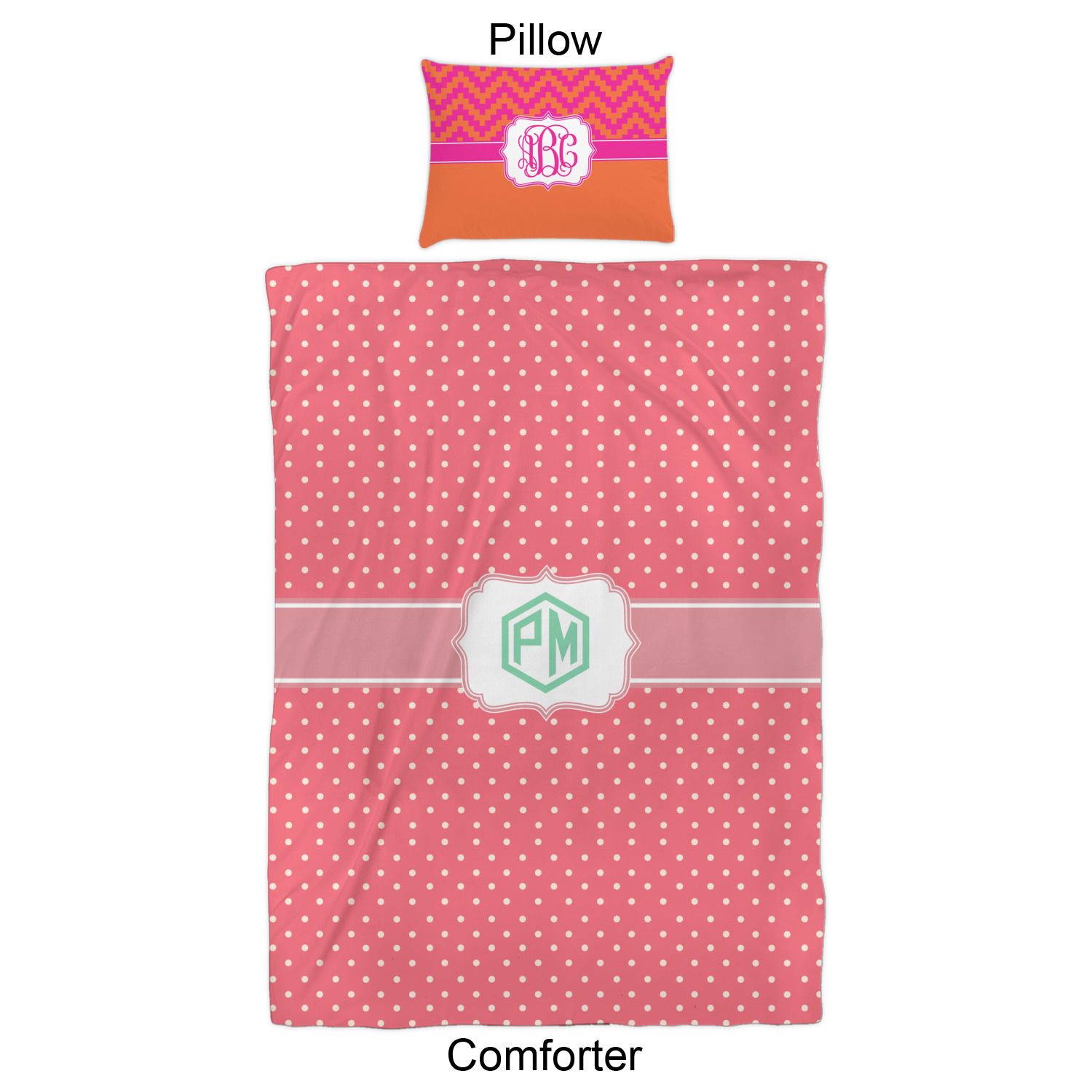 We have hundreds of different design templates for you to choose from Each design can be customized to your exact specifications. Not only can you customize the comforter, but you can also customize each pillow sham e.g. for a queen comforter set you have have Mr & Mrs pillow shams with the last name on comforter.