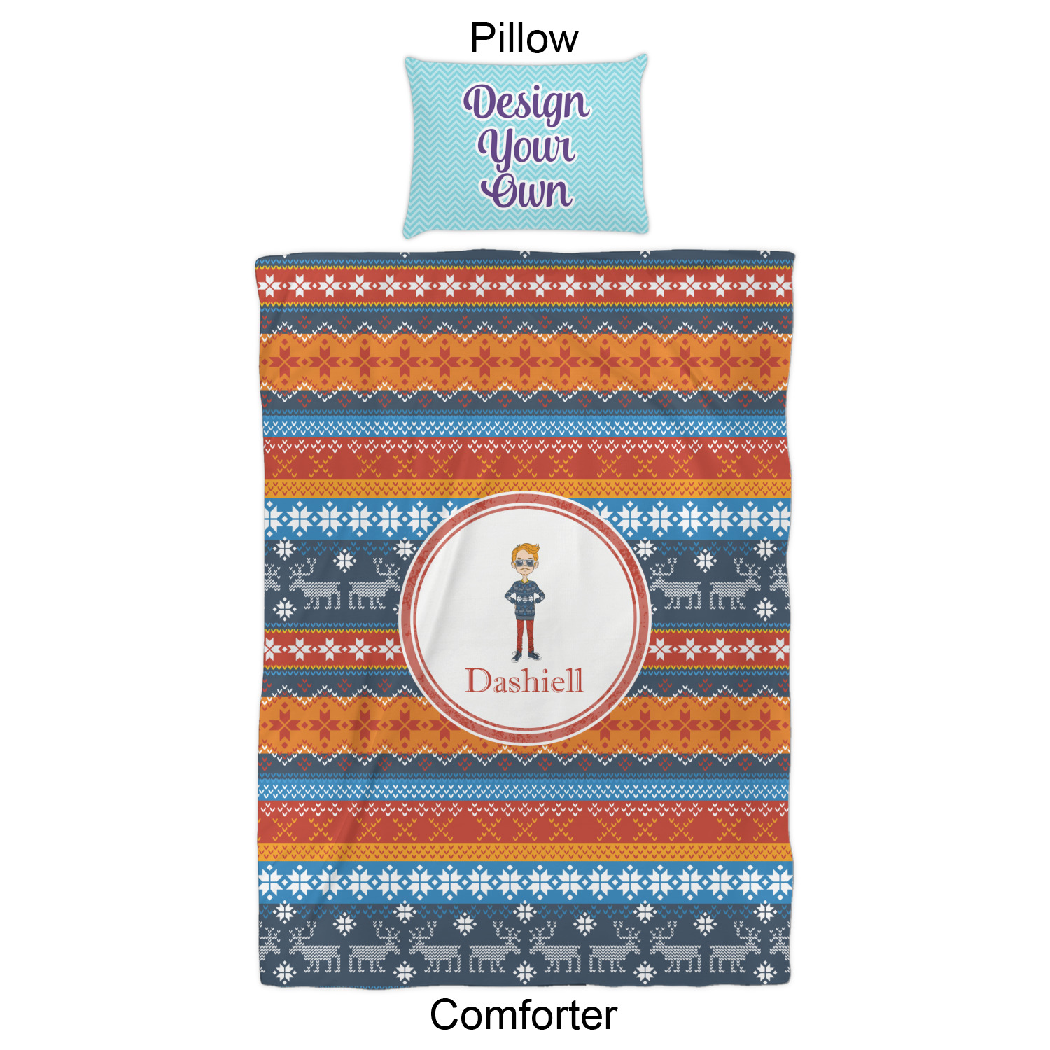 We have hundreds of different design templates for you to choose from Each design can be customized to your exact specifications. Not only can you customize the comforter, but you can also customize each pillow sham e.g. for a queen comforter set you have have Mr & Mrs pillow shams with the last name on comforter.