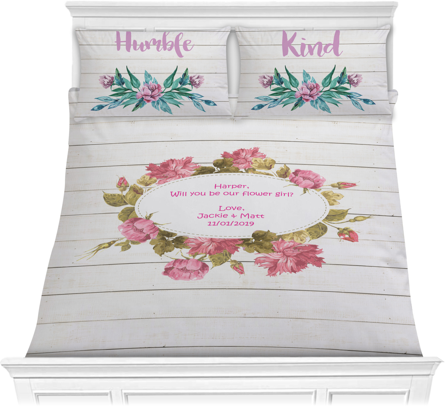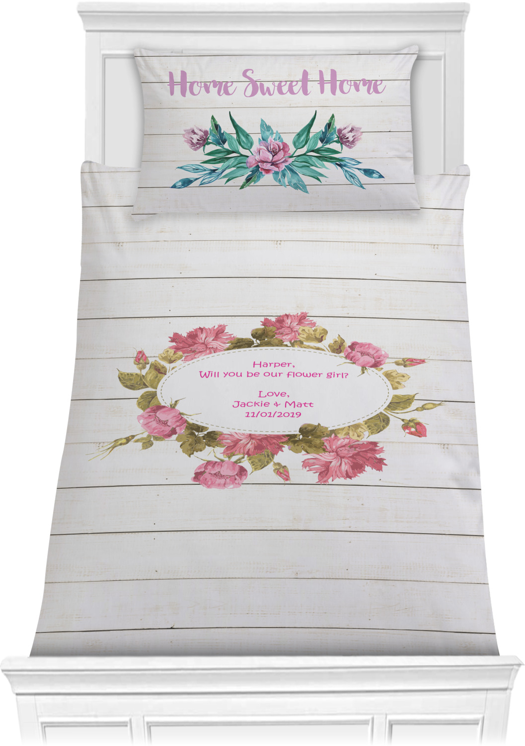 We have hundreds of different design templates for you to choose from Each design can be customized to your exact specifications. Not only can you customize the comforter, but you can also customize each pillow sham e.g. for a queen comforter set you have have Mr & Mrs pillow shams with the last name on comforter.