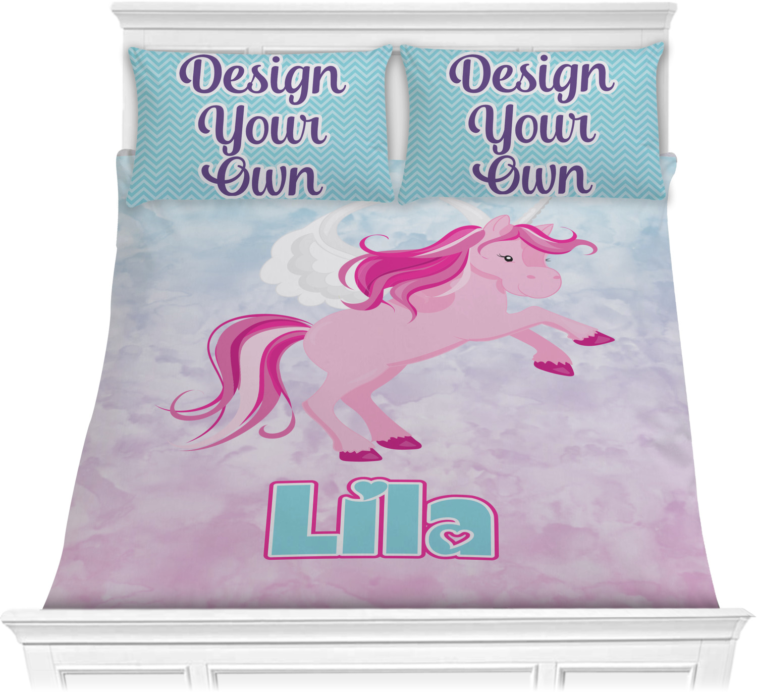 We have hundreds of different design templates for you to choose from Each design can be customized to your exact specifications. Not only can you customize the comforter, but you can also customize each pillow sham e.g. for a queen comforter set you have have Mr & Mrs pillow shams with the last name on comforter.