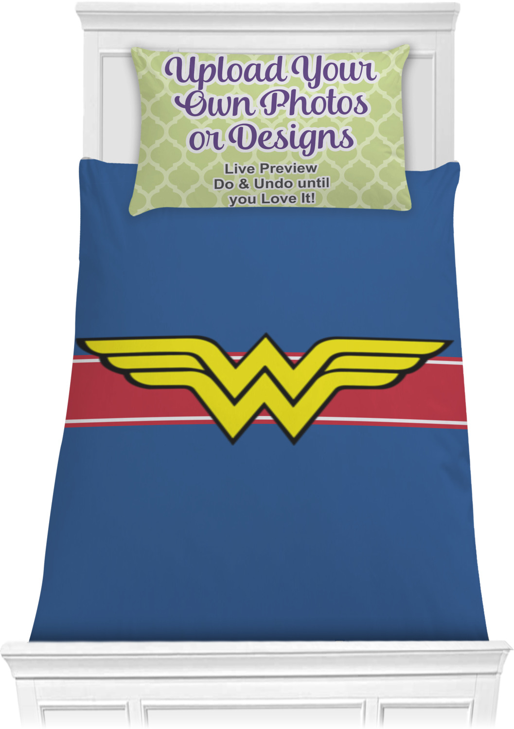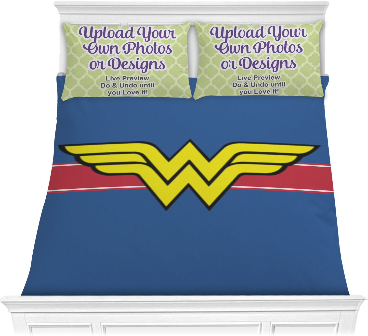 We have hundreds of different design templates for you to choose from Each design can be customized to your exact specifications. Not only can you customize the comforter, but you can also customize each pillow sham e.g. for a queen comforter set you have have Mr & Mrs pillow shams with the last name on comforter.