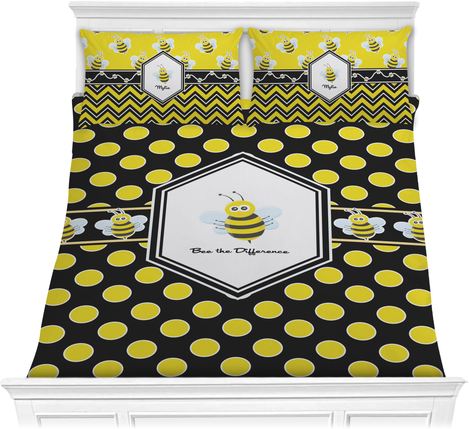 We have hundreds of different design templates for you to choose from Each design can be customized to your exact specifications. Not only can you customize the comforter, but you can also customize each pillow sham e.g. for a queen comforter set you have have Mr & Mrs pillow shams with the last name on comforter.