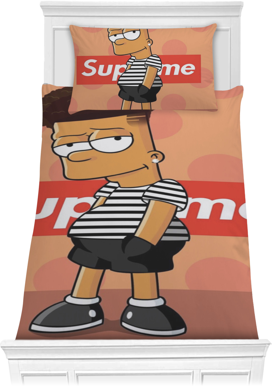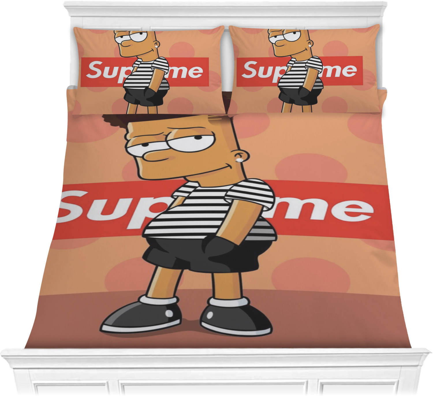 Both, the comforter and shams are digitally printed; all the fabric is then cut and sewn to make your custom comforter or comforter set.