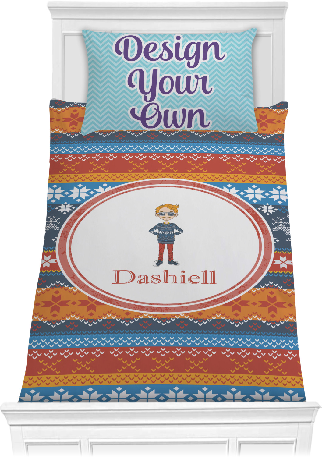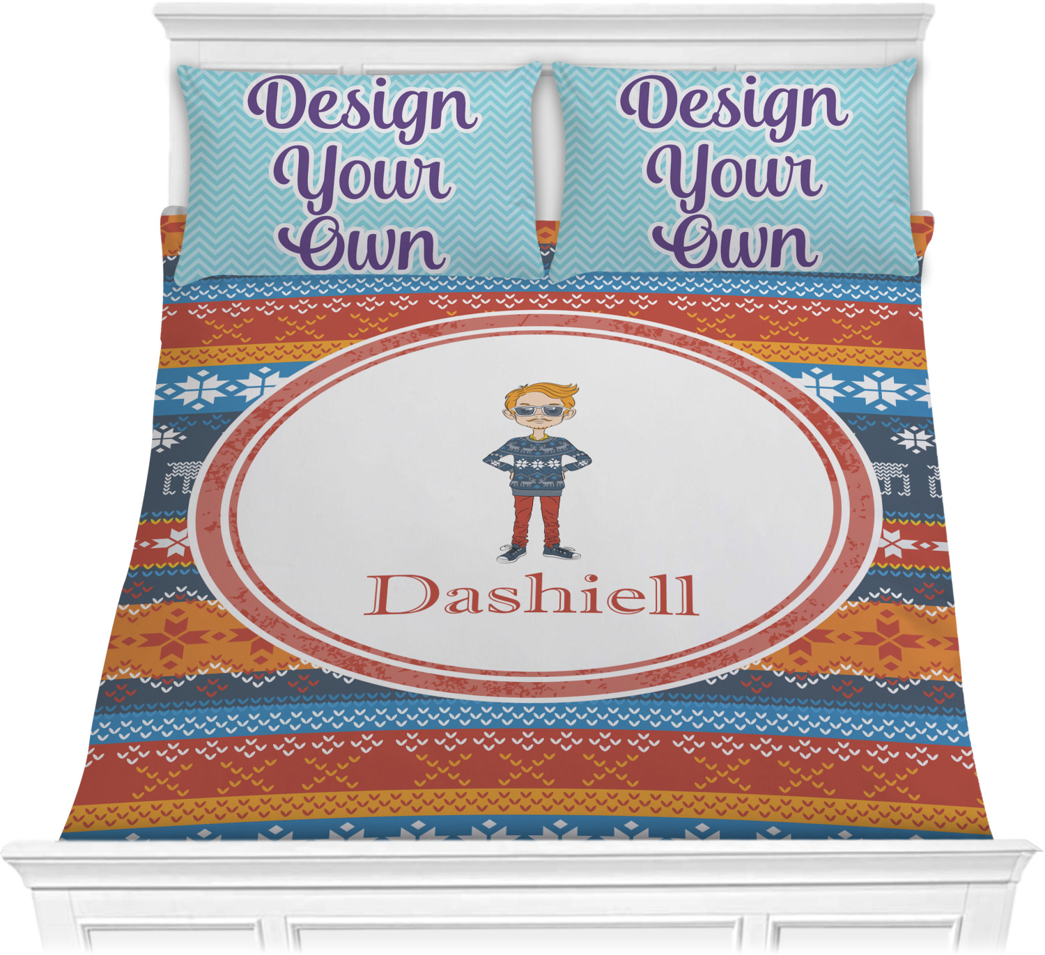 We have hundreds of different design templates for you to choose from Each design can be customized to your exact specifications. Not only can you customize the comforter, but you can also customize each pillow sham e.g. for a queen comforter set you have have Mr & Mrs pillow shams with the last name on comforter.