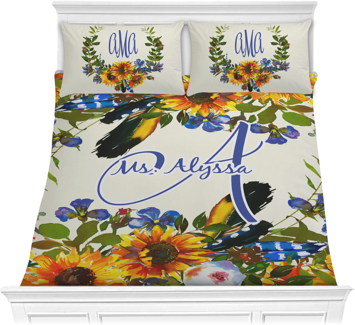 We have hundreds of different design templates for you to choose from Each design can be customized to your exact specifications. Not only can you customize the comforter, but you can also customize each pillow sham e.g. for a queen comforter set you have have Mr & Mrs pillow shams with the last name on comforter.