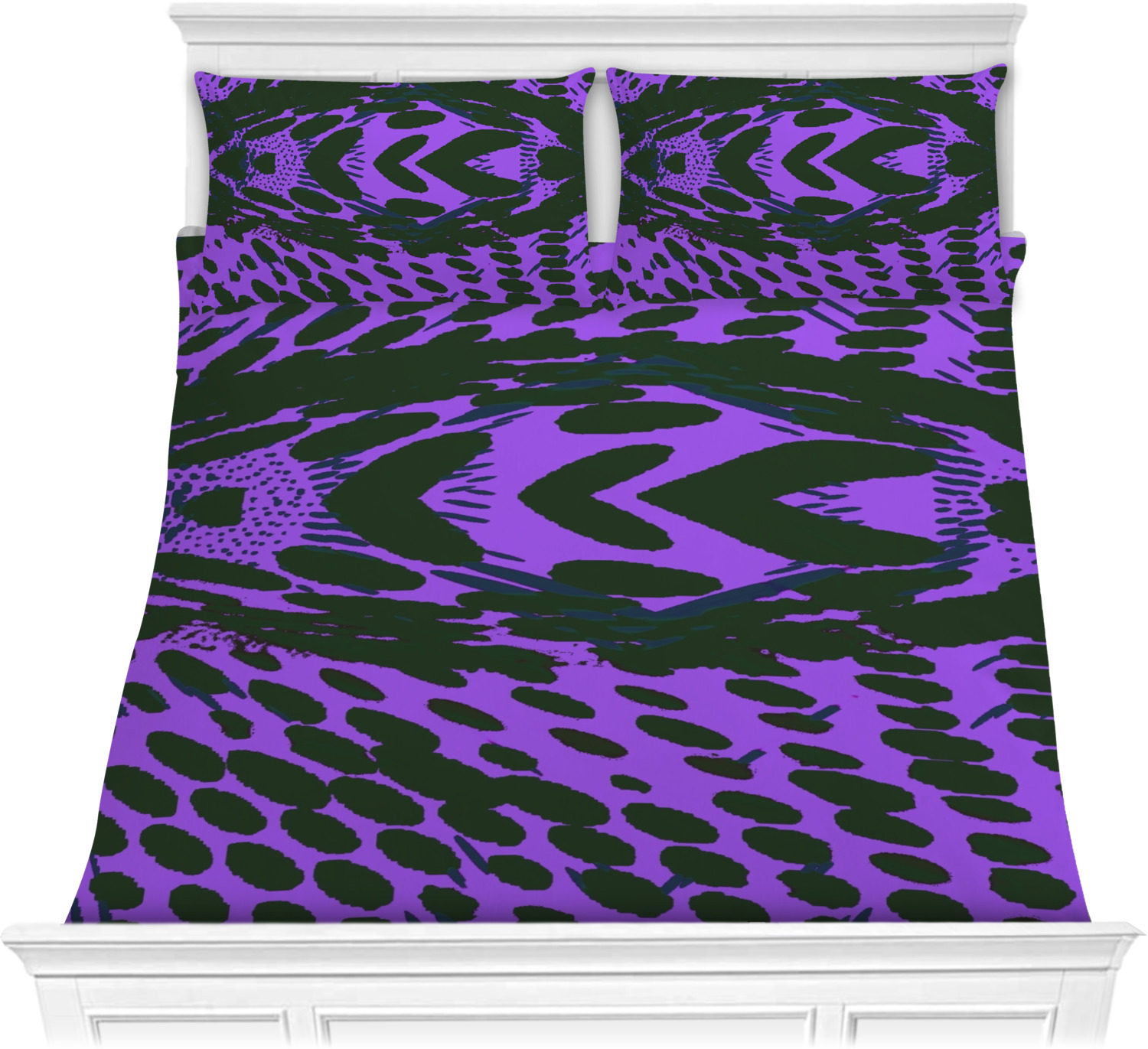Both, the comforter and shams are digitally printed; all the fabric is then cut and sewn to make your custom comforter or comforter set.