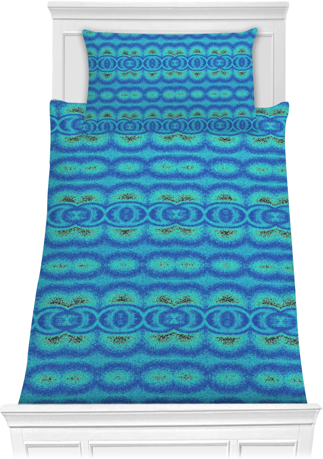 Both, the comforter and shams are digitally printed; all the fabric is then cut and sewn to make your custom comforter or comforter set.