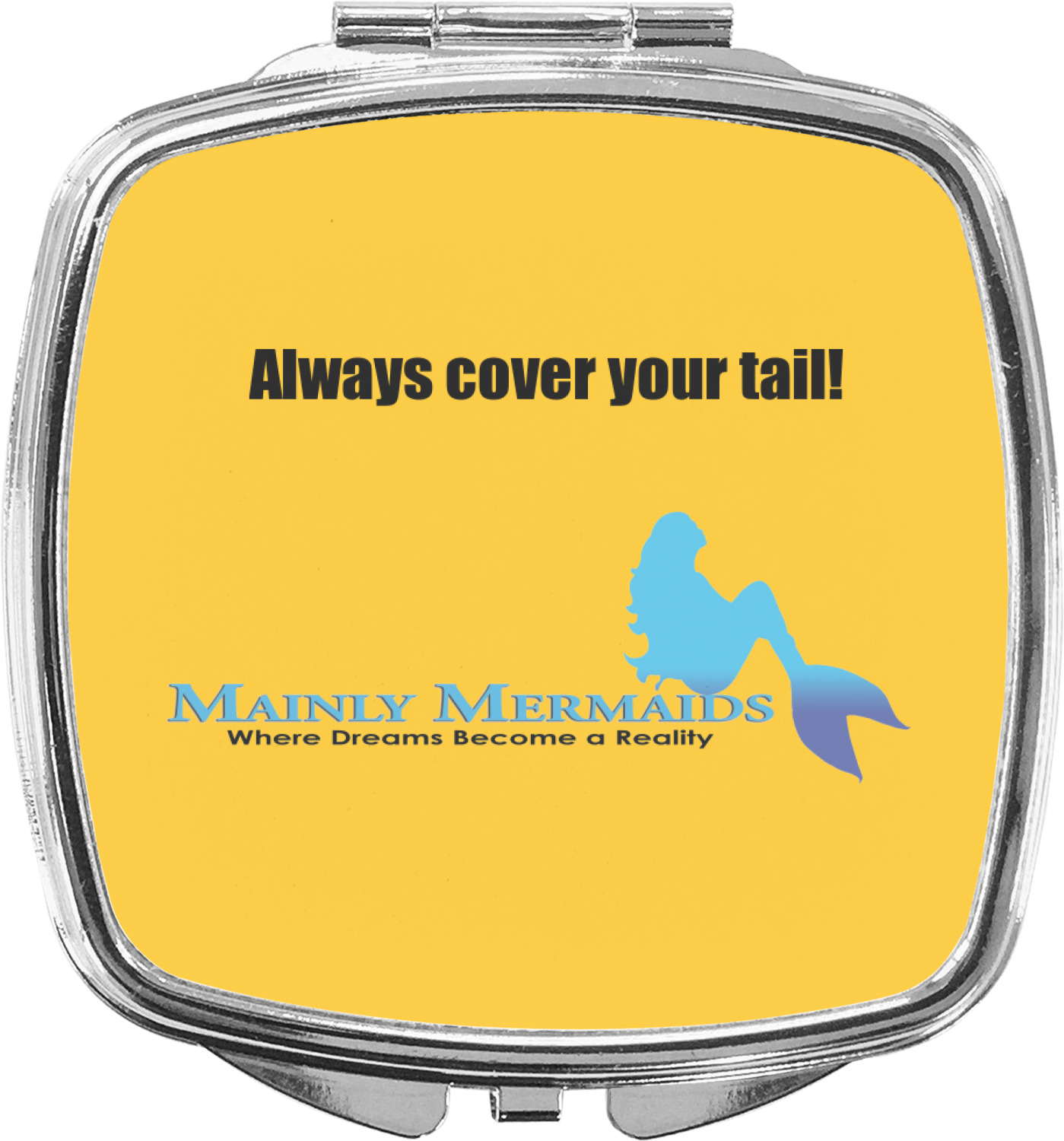 Our compact mirrors are customized with your design on one side. The other side is patterned silver tone metal. Inside, there are two mirrors.