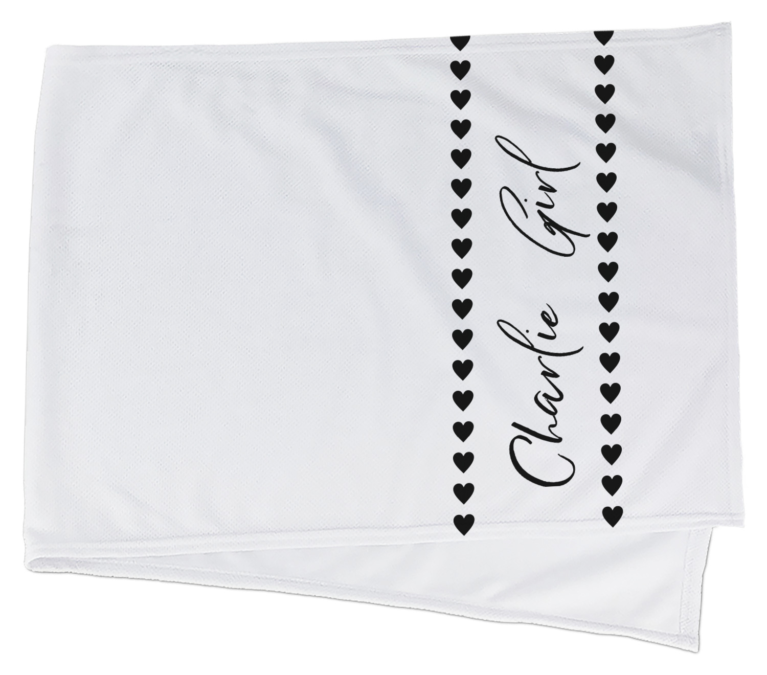 The 12" x 36" towel can be customized on one side to help you look great while staying chilled out! Great for athletes, hikers, golfers, and anyone else spending lots of time in the hot sun. Simply wet the towel in cool water, ring it out, stretch it out and it's sure to keep you cool.