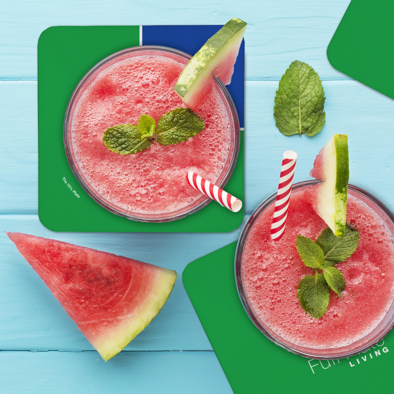 Your custom coasters have a smooth, laminated top and a cork bottom to prevent any unwanted slippage. We print your customized design atop this laminated surface, in bright and vibrant colors.