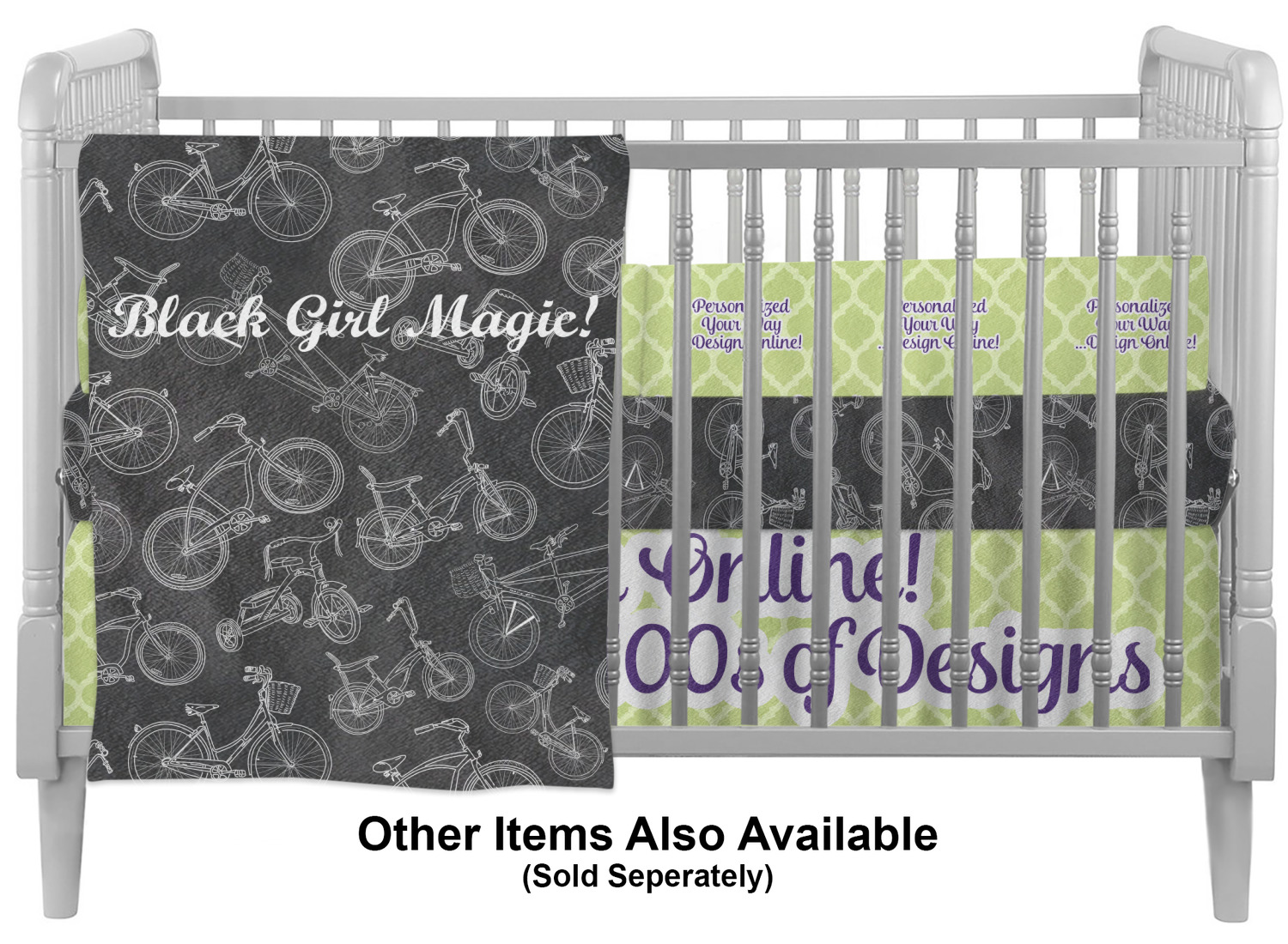 Interested in adding more personalized items to your baby's crib bedding set? Explore our Baby and Toddler department, where you'll find an array of customizable products for your child! We offer crib fitted sheets, nightlights, and curtains for your baby's nursery. Looking to match your own comforter set with your child's? We even offer duvet covers and comforters for adults, in a variety of sizes!