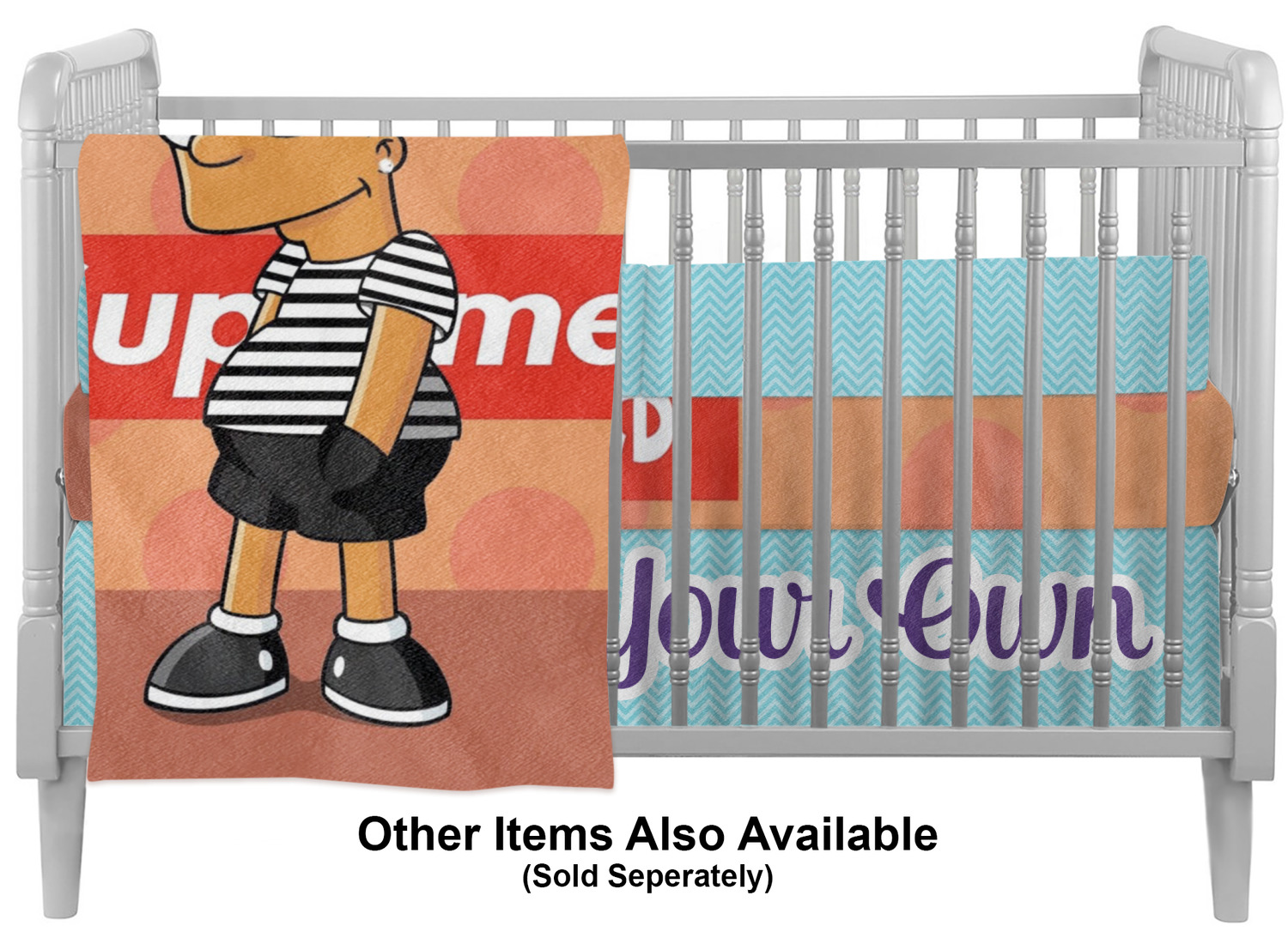 Interested in adding more personalized items to your baby's crib bedding set? Explore our Baby and Toddler department, where you'll find an array of customizable products for your child! We offer crib fitted sheets, nightlights, and curtains for your baby's nursery. Looking to match your own comforter set with your child's? We even offer duvet covers and comforters for adults, in a variety of sizes!