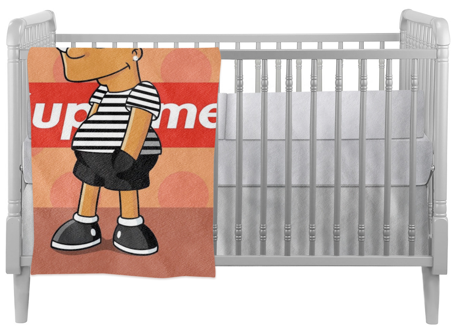 These crib comforters are printed, cut, and sewn by hand, right here in the USA. These blankets are made of two fabrics to provide two different, luxurious textures. The front is crafted from a plush, minky-like fabric, and displays your personalized design in bright colors. The back of these custom baby quilts are made of 320-count cotton sateen and can either be black or white in color, depending on your choice. Each comforter is stuffed with a down alternative to give your young one the maximum comfort while he or she sleeps. We also provide you with the option of customizing these baby quilts horizontally or vertically.