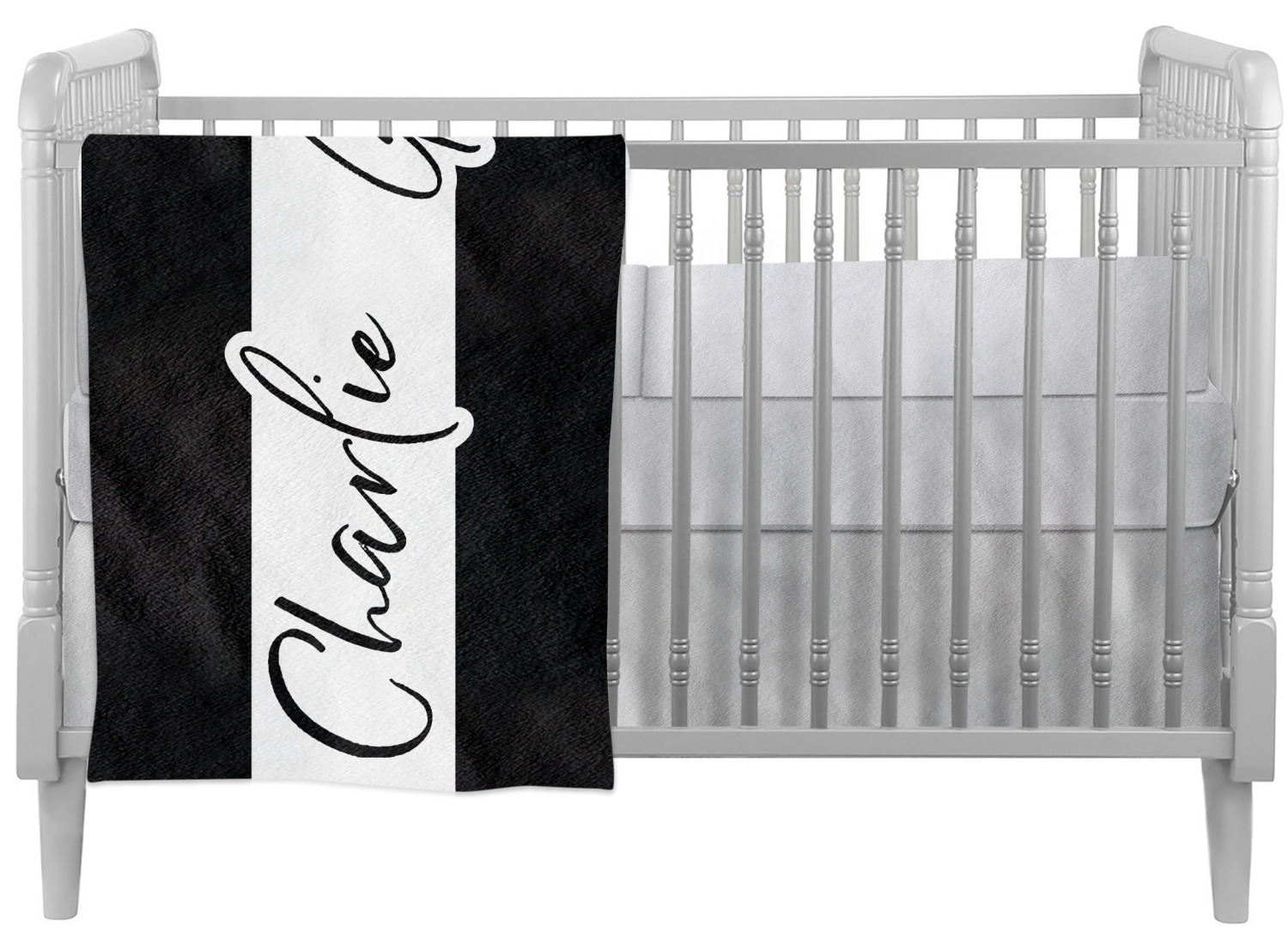 These crib comforters are printed, cut, and sewn by hand, right here in the USA. These blankets are made of two fabrics to provide two different, luxurious textures. The front is crafted from a plush, minky-like fabric, and displays your personalized design in bright colors. The back of these custom baby quilts are made of 320-count cotton sateen and can either be black or white in color, depending on your choice. Each comforter is stuffed with a down alternative to give your young one the maximum comfort while he or she sleeps. We also provide you with the option of customizing these baby quilts horizontally or vertically.
