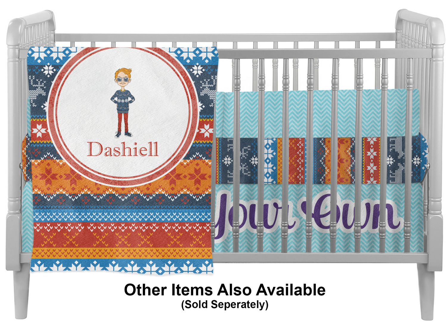 Hipster Winter Design on Custom Crib Comforter / Quilt