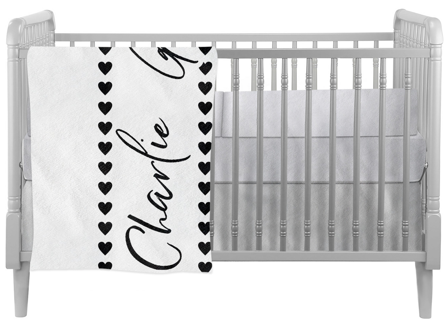 These crib comforters are printed, cut, and sewn by hand, right here in the USA. These blankets are made of two fabrics to provide two different, luxurious textures. The front is crafted from a plush, minky-like fabric, and displays your personalized design in bright colors. The back of these custom baby quilts are made of 320-count cotton sateen and can either be black or white in color, depending on your choice. Each comforter is stuffed with a down alternative to give your young one the maximum comfort while he or she sleeps. We also provide you with the option of customizing these baby quilts horizontally or vertically.