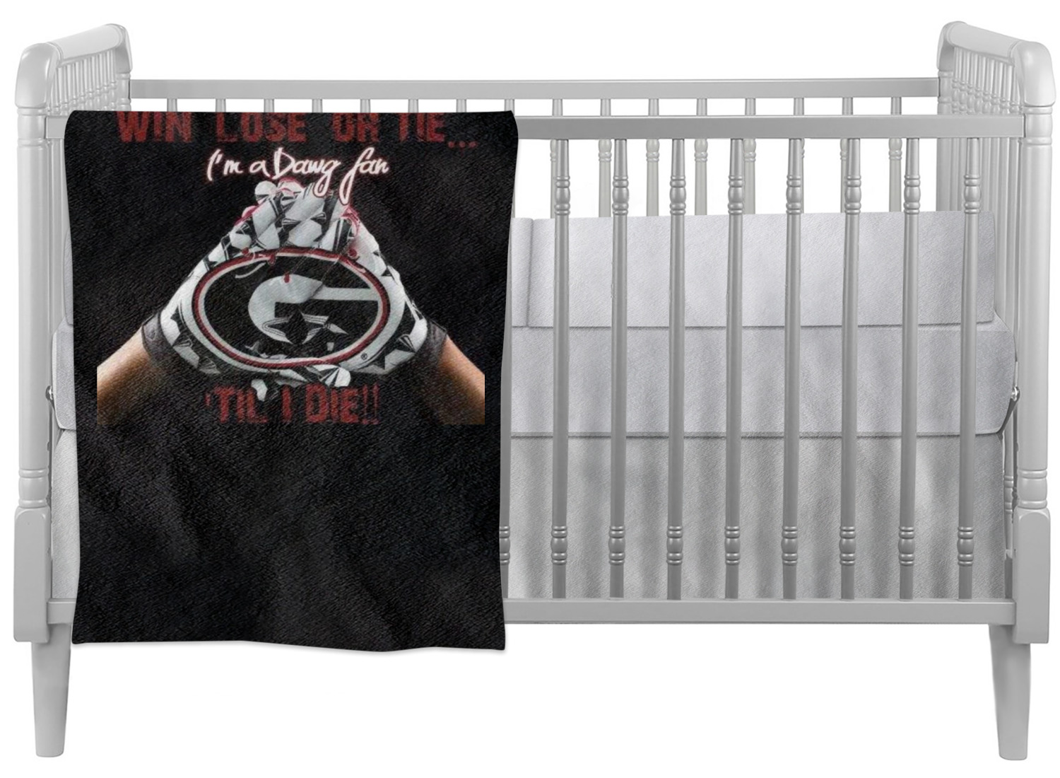 These crib comforters are printed, cut, and sewn by hand, right here in the USA. These blankets are made of two fabrics to provide two different, luxurious textures. The front is crafted from a plush, minky-like fabric, and displays your personalized design in bright colors. The back of these custom baby quilts are made of 320-count cotton sateen and can either be black or white in color, depending on your choice. Each comforter is stuffed with a down alternative to give your young one the maximum comfort while he or she sleeps. We also provide you with the option of customizing these baby quilts horizontally or vertically.