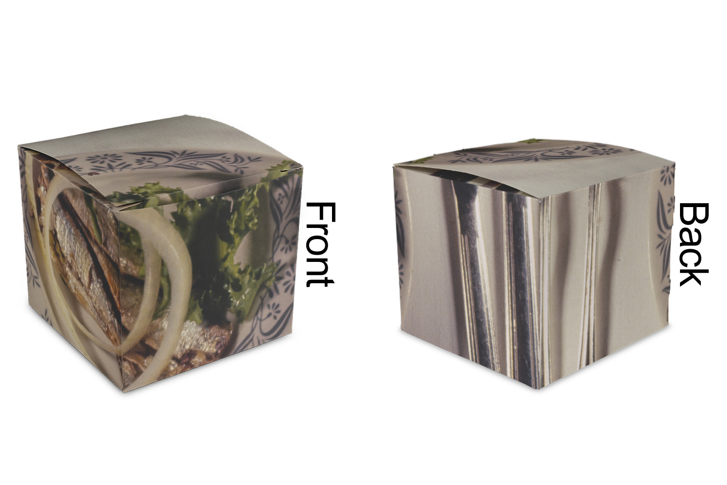 These cubic favor boxes are printed in full color on premium heavyweight cardstock that has a smooth semi-gloss finish.