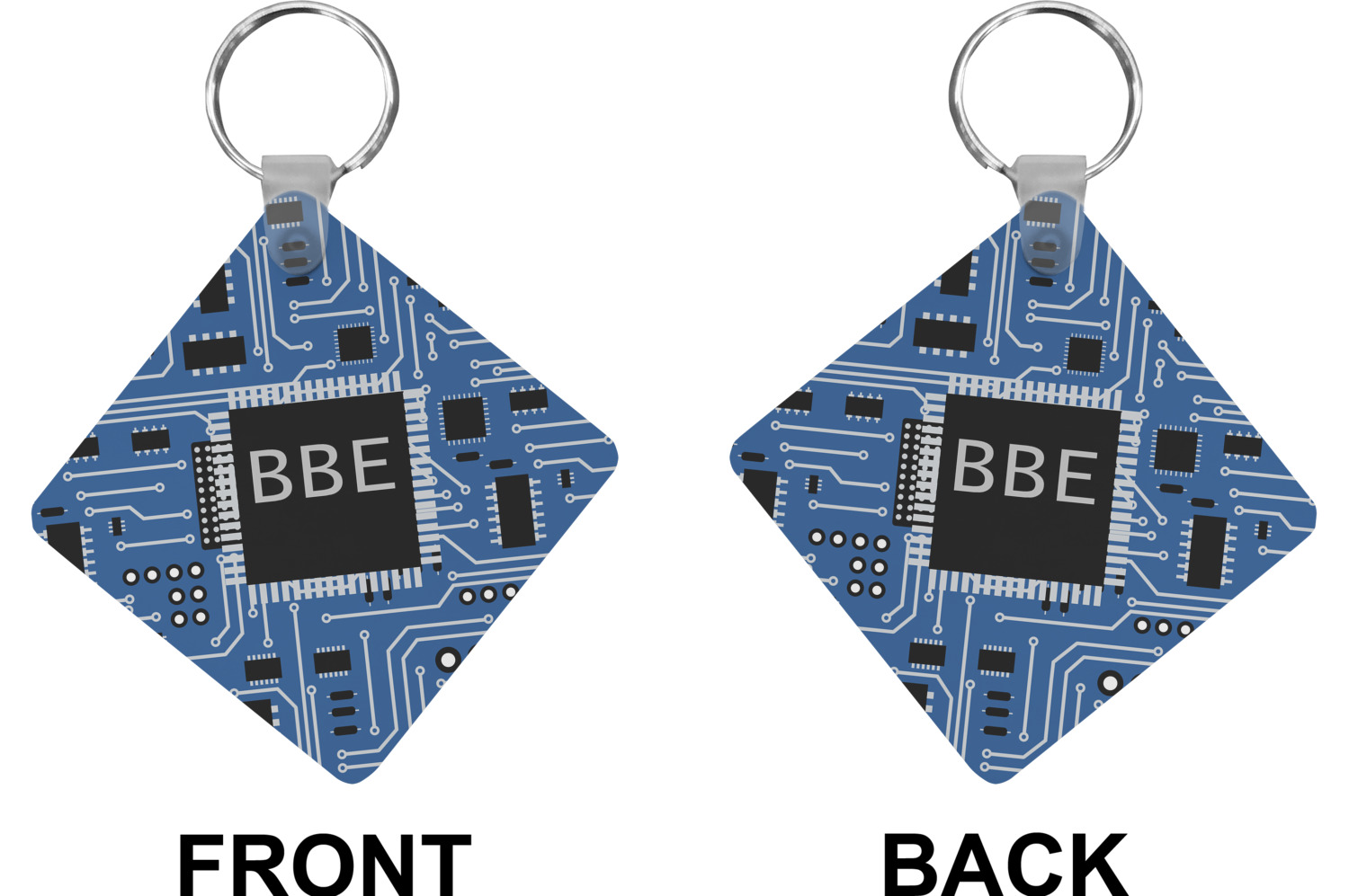 Our personalized keychains attach to the included metal, split key ring with a plastic, removable snap. Since a metal ring is included with your purchase, you have the liberty to keep your keys together on the ring, with or without your unique keychain. We offer this keychain in three different shapes: circle, heart, or diamond. We print your personalized design(s) on both sides of the key chain, and the surface has a glossy, reflective finish that only emphasizes your design. Each keychain is approximately 2.25 by 2.25 inches.