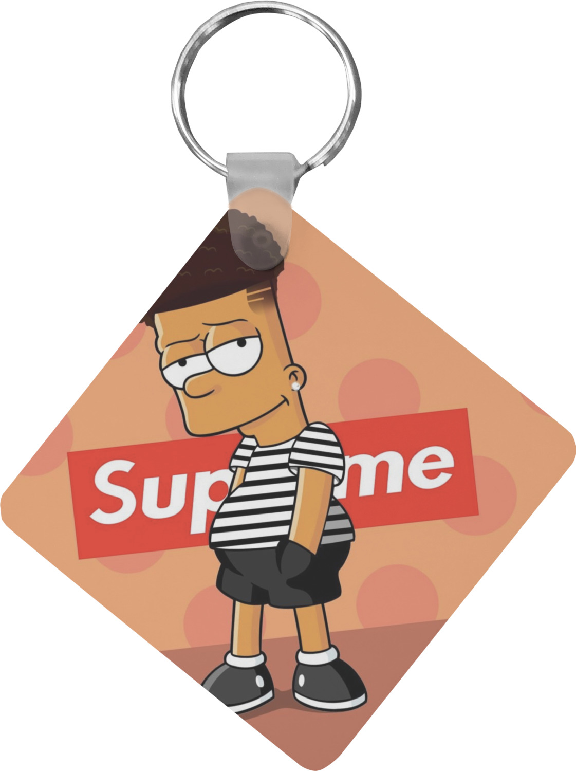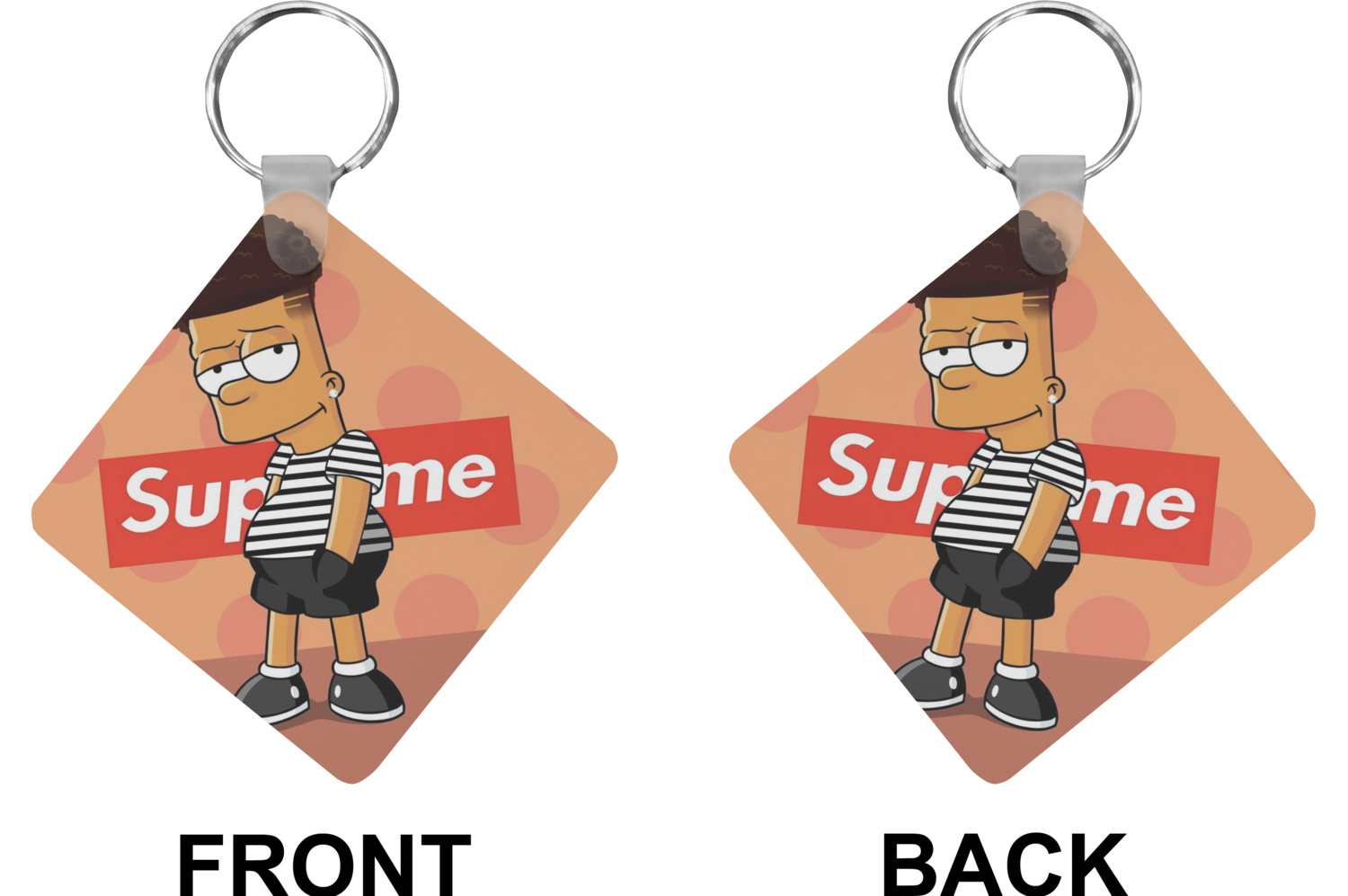 Our personalized keychains attach to the included metal, split key ring with a plastic, removable snap. Since a metal ring is included with your purchase, you have the liberty to keep your keys together on the ring, with or without your unique keychain. We offer this keychain in three different shapes: circle, heart, or diamond. We print your personalized design(s) on both sides of the key chain, and the surface has a glossy, reflective finish that only emphasizes your design. Each keychain is approximately 2.25 by 2.25 inches.
