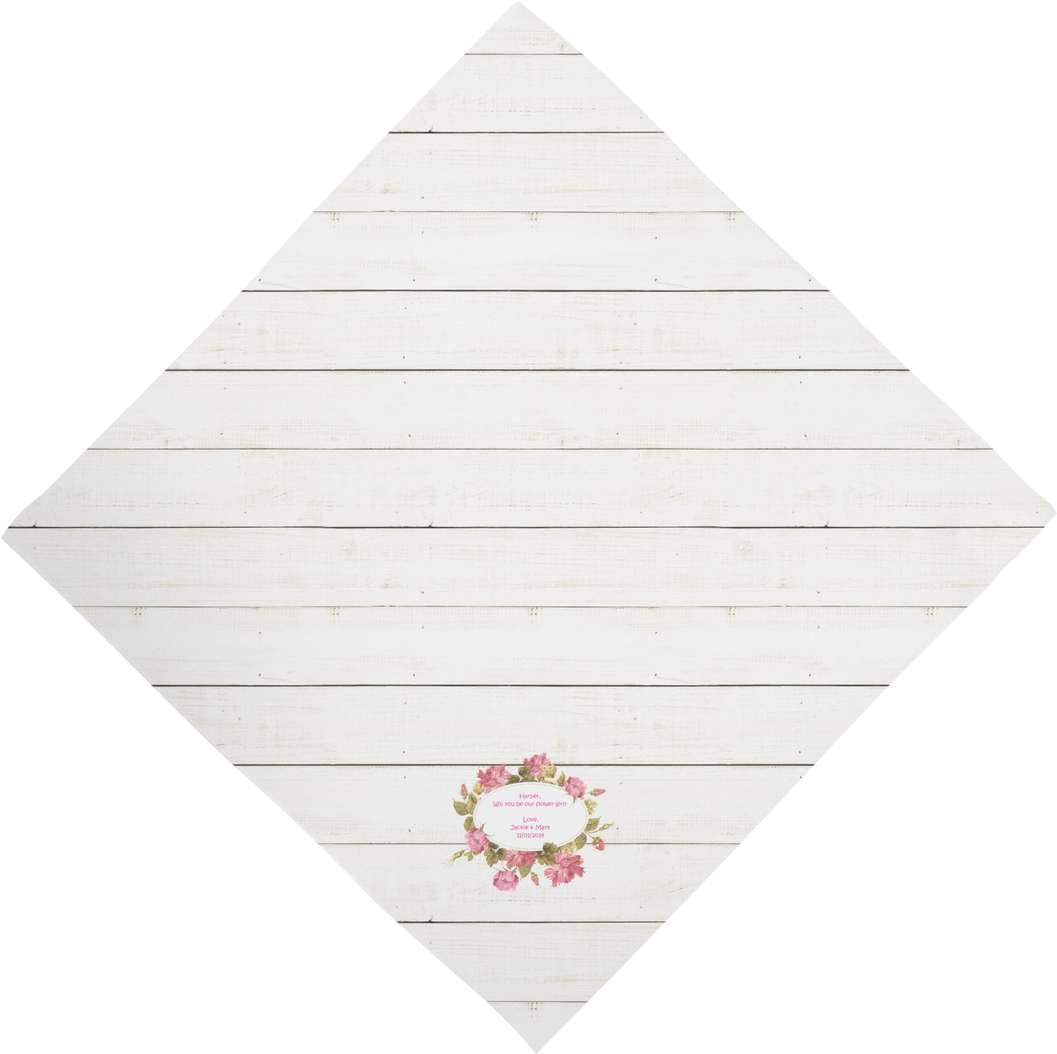 This beautiful pet bandana really is the perfect accessory. It is made from a silky feeling polyester and measures at approximately 23" x 23". Your personalization will be printed on a diagonal, so that you are able to read the personalization when folded into a triangle. This bandana fits best on large dogs, but can be folded smaller if there is no personalized text to fit smaller pets.