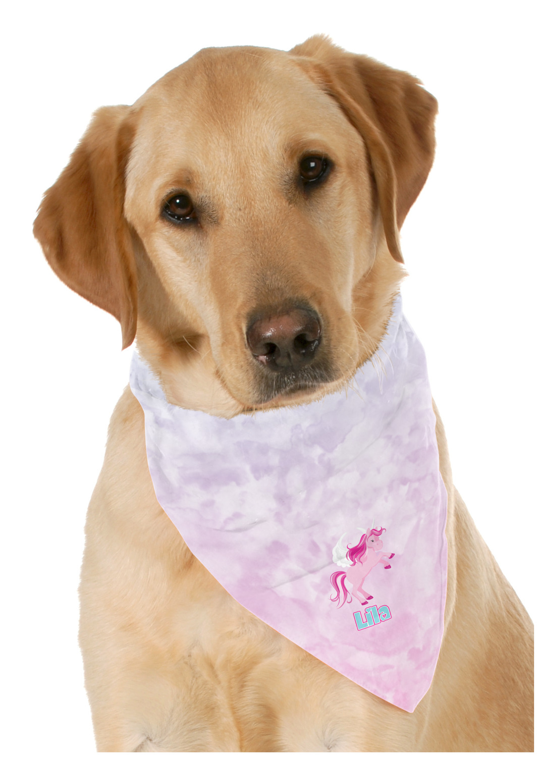This beautiful pet bandana really is the perfect accessory. It is made from a silky feeling polyester and measures at approximately 23" x 23". Your personalization will be printed on a diagonal, so that you are able to read the personalization when folded into a triangle. This bandana fits best on large dogs, but can be folded smaller if there is no personalized text to fit smaller pets.