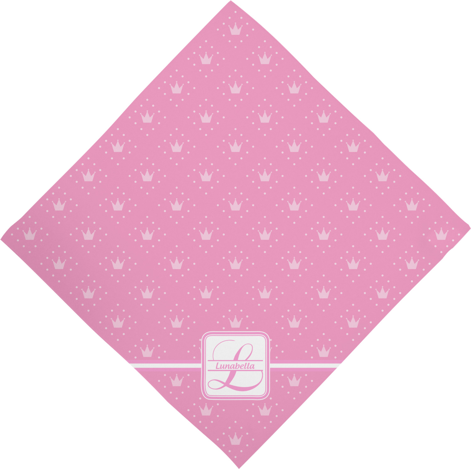 This beautiful pet bandana really is the perfect accessory. It is made from a silky feeling polyester and measures at approximately 23" x 23". Your personalization will be printed on a diagonal, so that you are able to read the personalization when folded into a triangle. This bandana fits best on large dogs, but can be folded smaller if there is no personalized text to fit smaller pets.