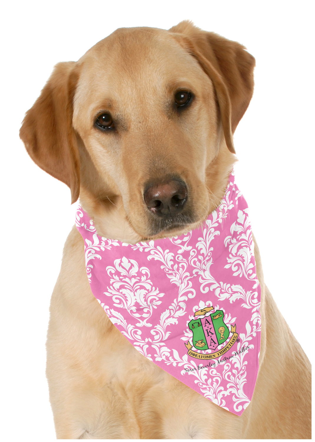 This beautiful pet bandana really is the perfect accessory. It is made from a silky feeling polyester and measures at approximately 23" x 23". Your personalization will be printed on a diagonal, so that you are able to read the personalization when folded into a triangle. This bandana fits best on large dogs, but can be folded smaller if there is no personalized text to fit smaller pets.