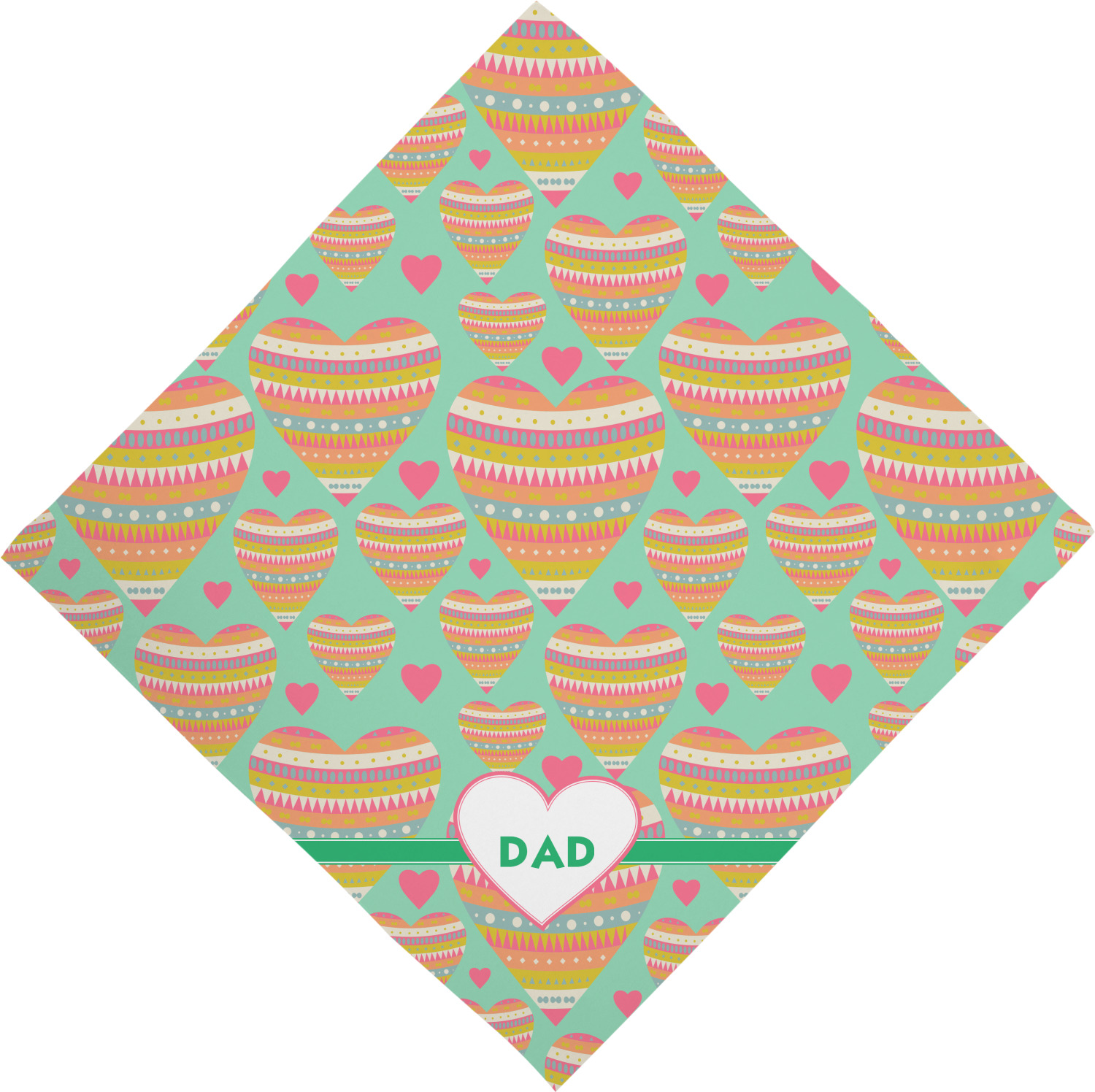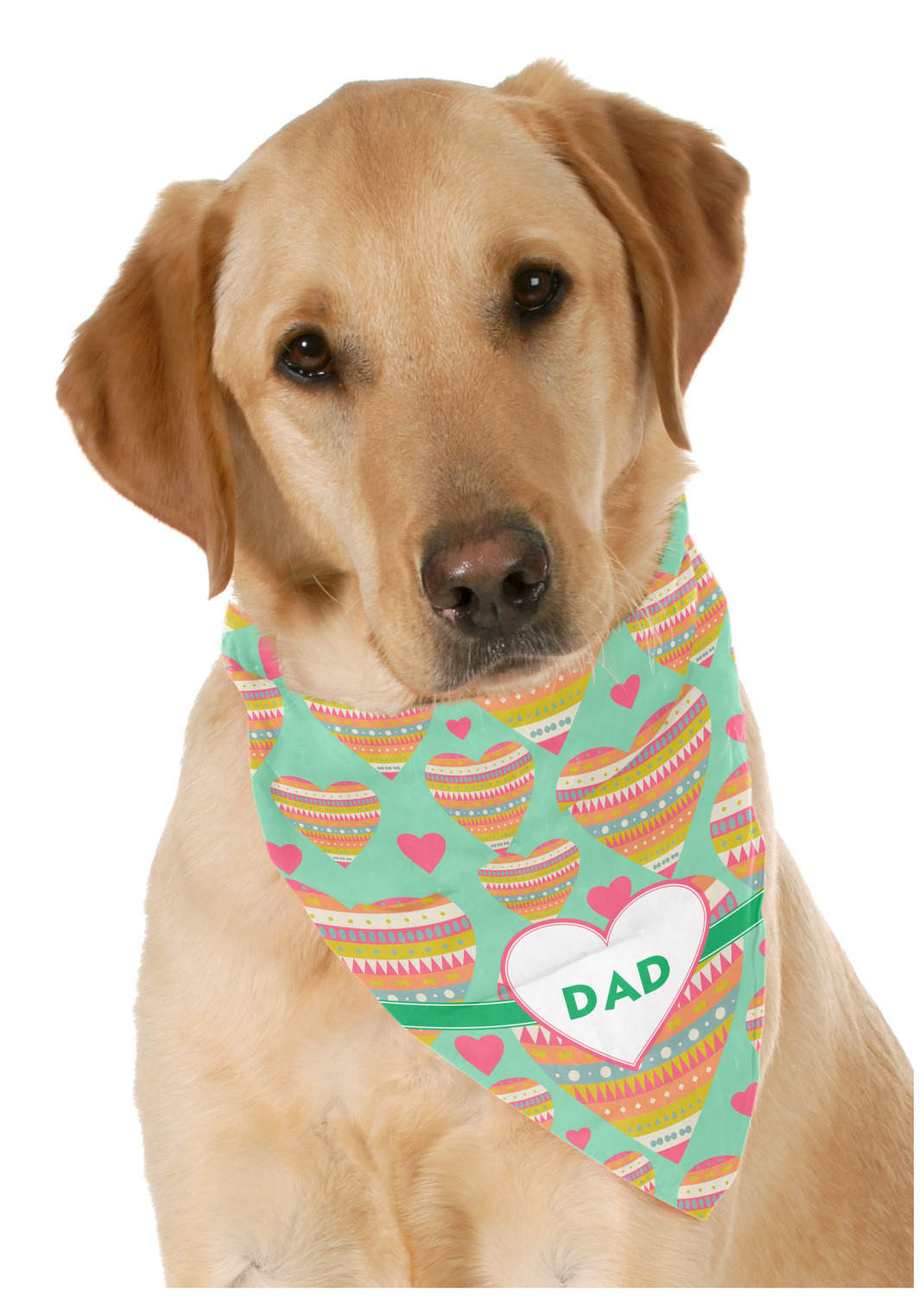 This beautiful pet bandana really is the perfect accessory. It is made from a silky feeling polyester and measures at approximately 23" x 23". Your personalization will be printed on a diagonal, so that you are able to read the personalization when folded into a triangle. This bandana fits best on large dogs, but can be folded smaller if there is no personalized text to fit smaller pets.
