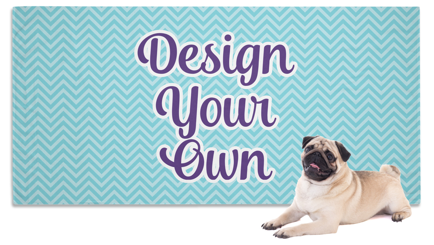 Our custom towels are crafted from a special blend of polyester and polyamide, which contributes to its lightweight, yet thoroughly absorbent nature. We craft it as such to guarantee efficiency as a convenient product; its lightweight nature makes it easy to roll up and carry along, yet it is still able to dry off even the wettest, muddiest pet. It measures at 60" x 30" and is sizable enough to dry off even the largest of pets. With our towel's gentle, soft-to-the-touch material, your pet will be sure to anticipate its warm, dry embrace. We print your personalized design on the front of the towel, while the back is white.