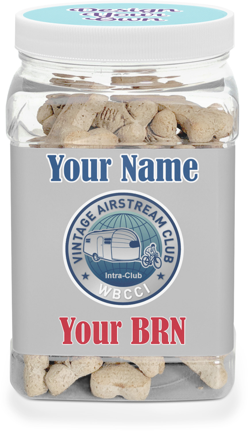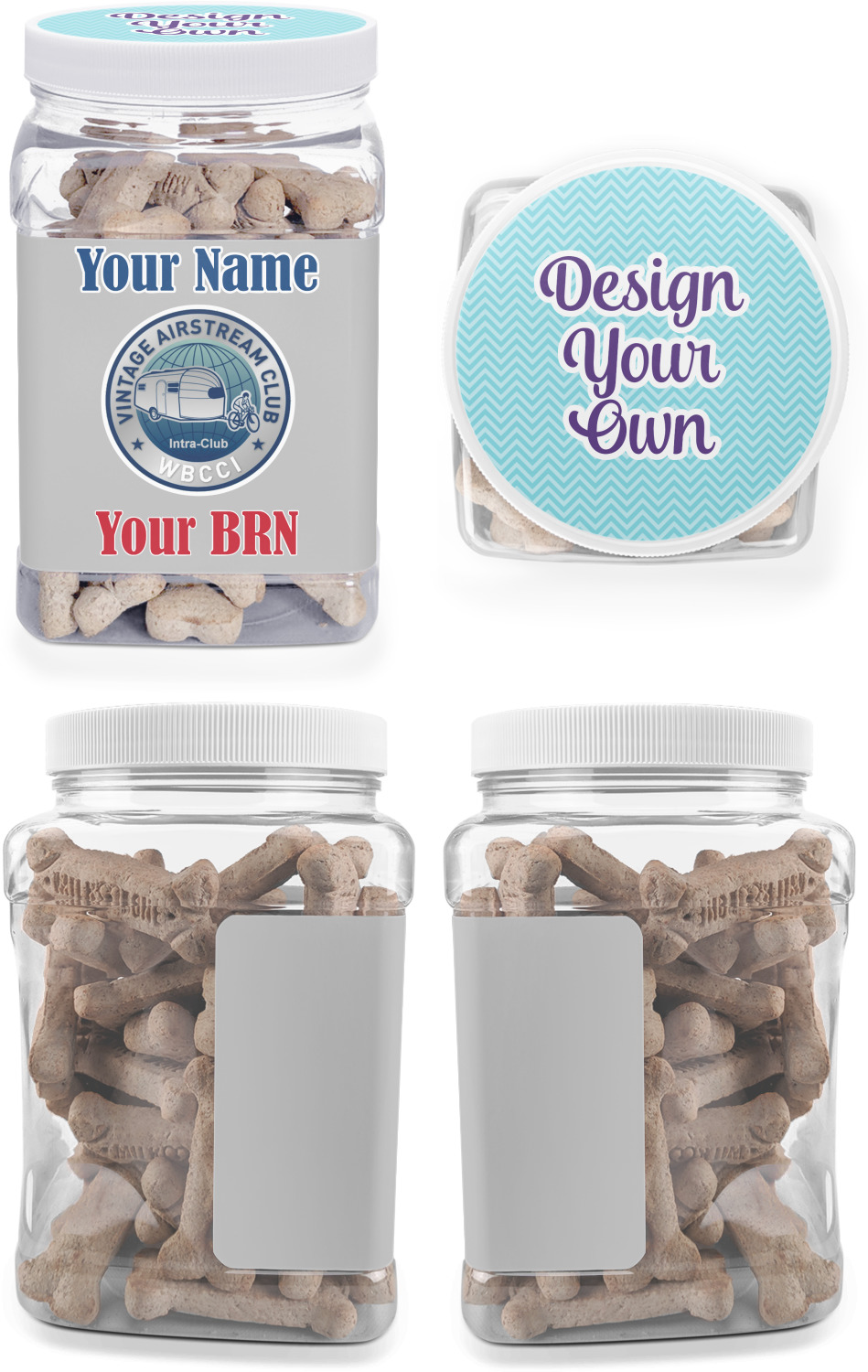 This half gallon jar, made from a sturdy plastic, is the perfect way to keep treats from any naughty pet paws, while still keeping them ready on hand for when your pup performs an impressive trick. This dog cookie jar features a screw-on, white lid that displays your personalized design on a vinyl sticker. We apply another customized sticker that wraps around the front and sides of the jar. Our dog treat jar also has indentations on the rear ends of the sides, which allows for convenient handling, and its square frame allows for easy storage.