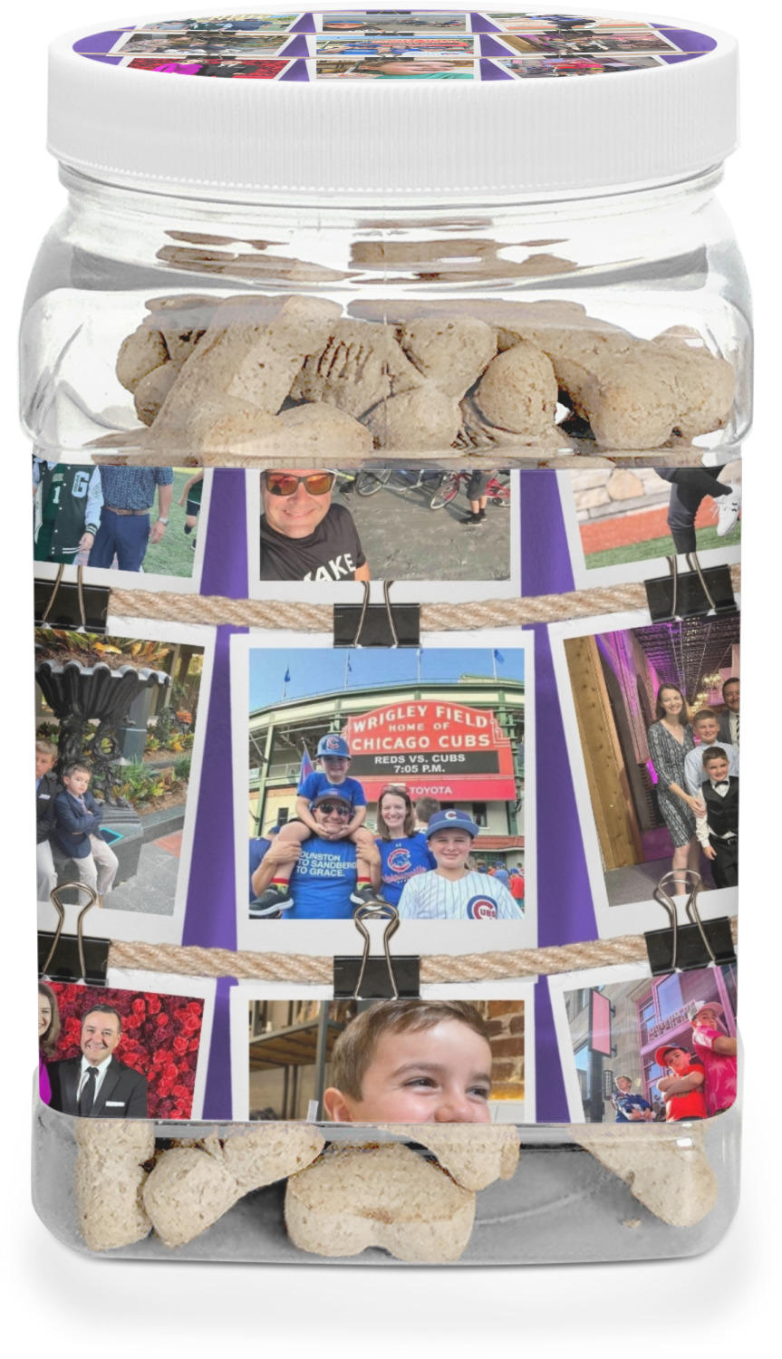 Spoil your pup with a brand new, personalized dog treat container! Your dog will be sure to wag his/her tail whenever he/she catches sight of it perched on your countertop!