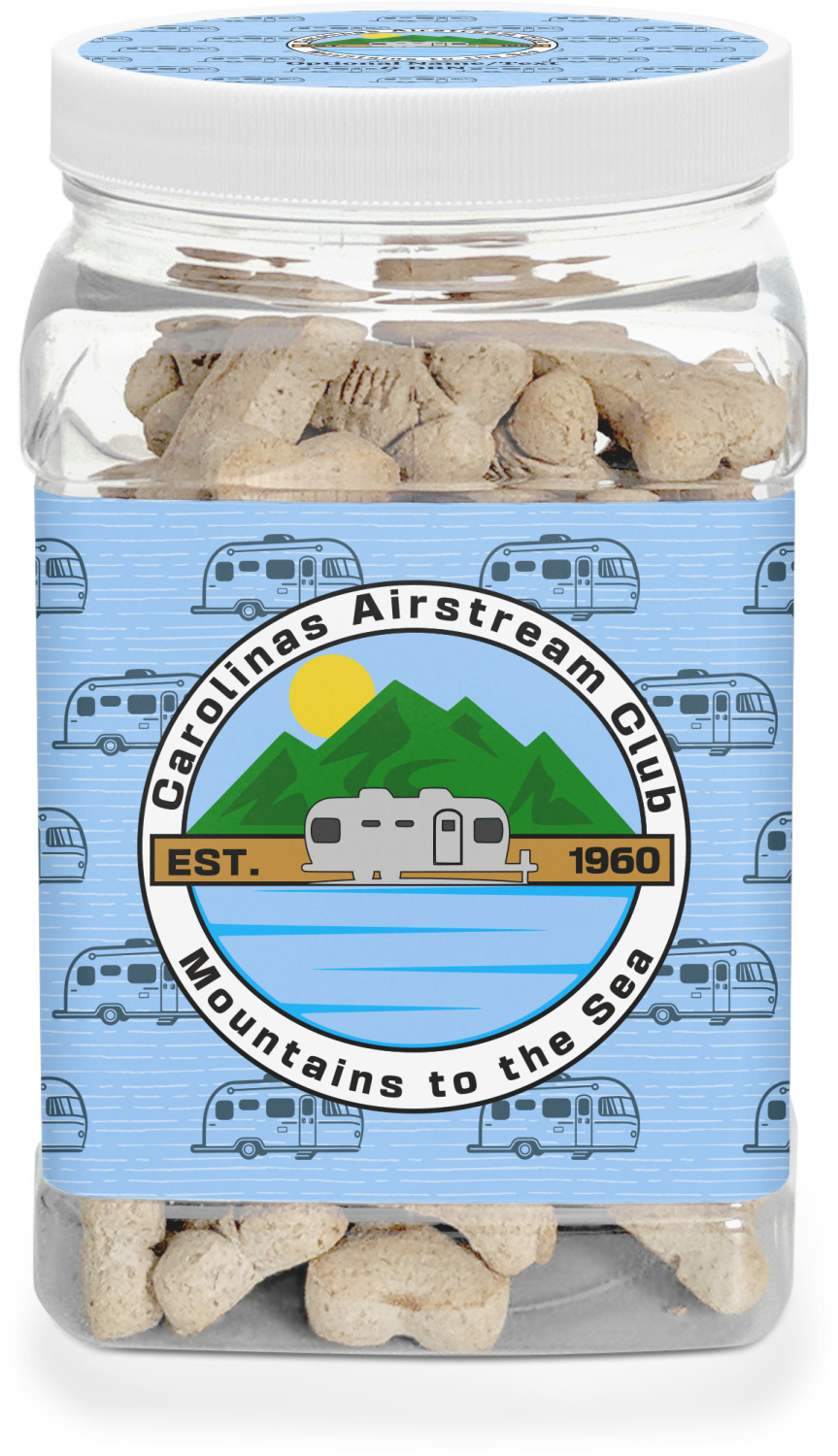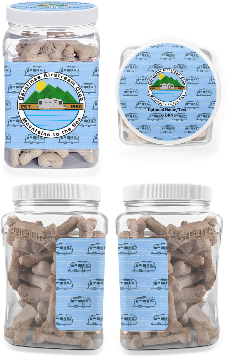 This half gallon jar, made from a sturdy plastic, is the perfect way to keep treats from any naughty pet paws, while still keeping them ready on hand for when your pup performs an impressive trick. This dog cookie jar features a screw-on, white lid that displays your personalized design on a vinyl sticker. We apply another customized sticker that wraps around the front and sides of the jar. Our dog treat jar also has indentations on the rear ends of the sides, which allows for convenient handling, and its square frame allows for easy storage.