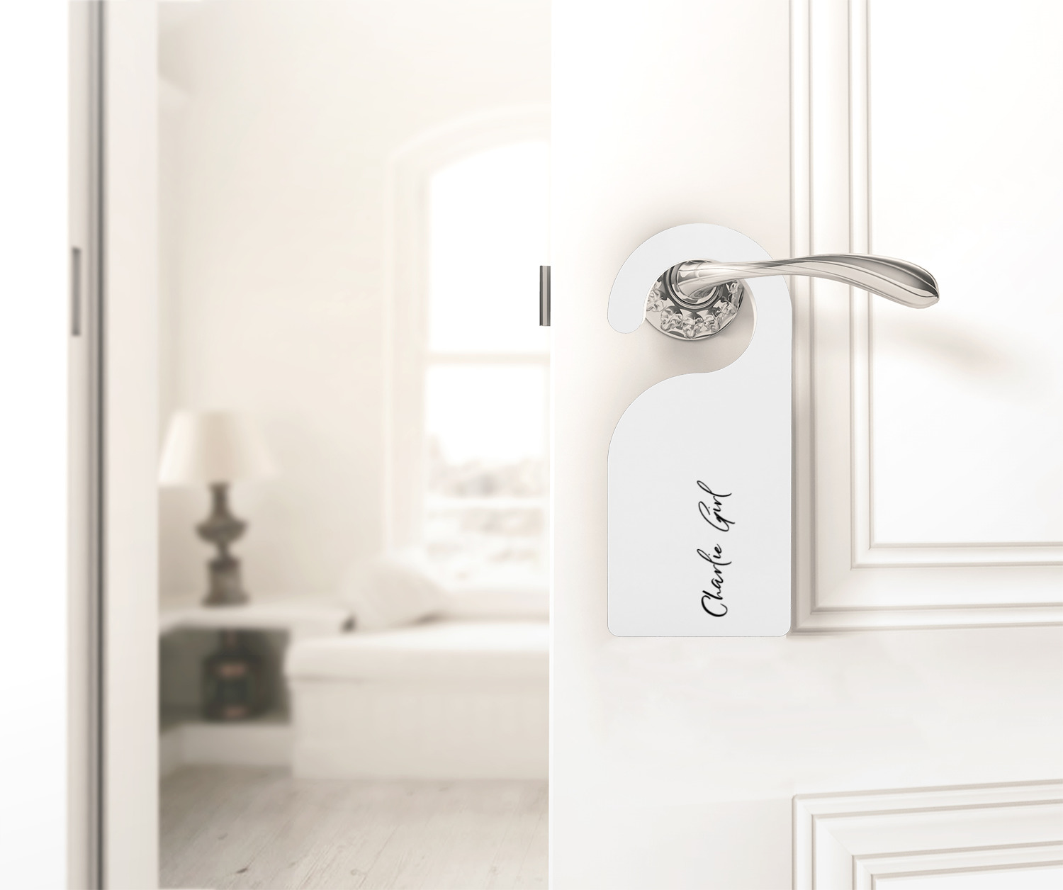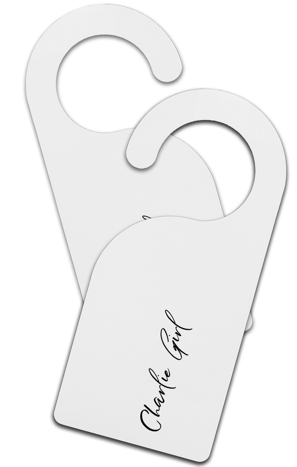 These door hanger signs are built to be durable enough for day-to-day use. Your customization is printed across the entire surface, beneath a glossy shine that makes your design really stand out. You can choose to have the same design on both faces of these door hang tags, or you can make the designs different, depending on your needs. The curved hook at the top of this personalized door hangers allows the tag to remain attached to the handle even when you close or open the door.
