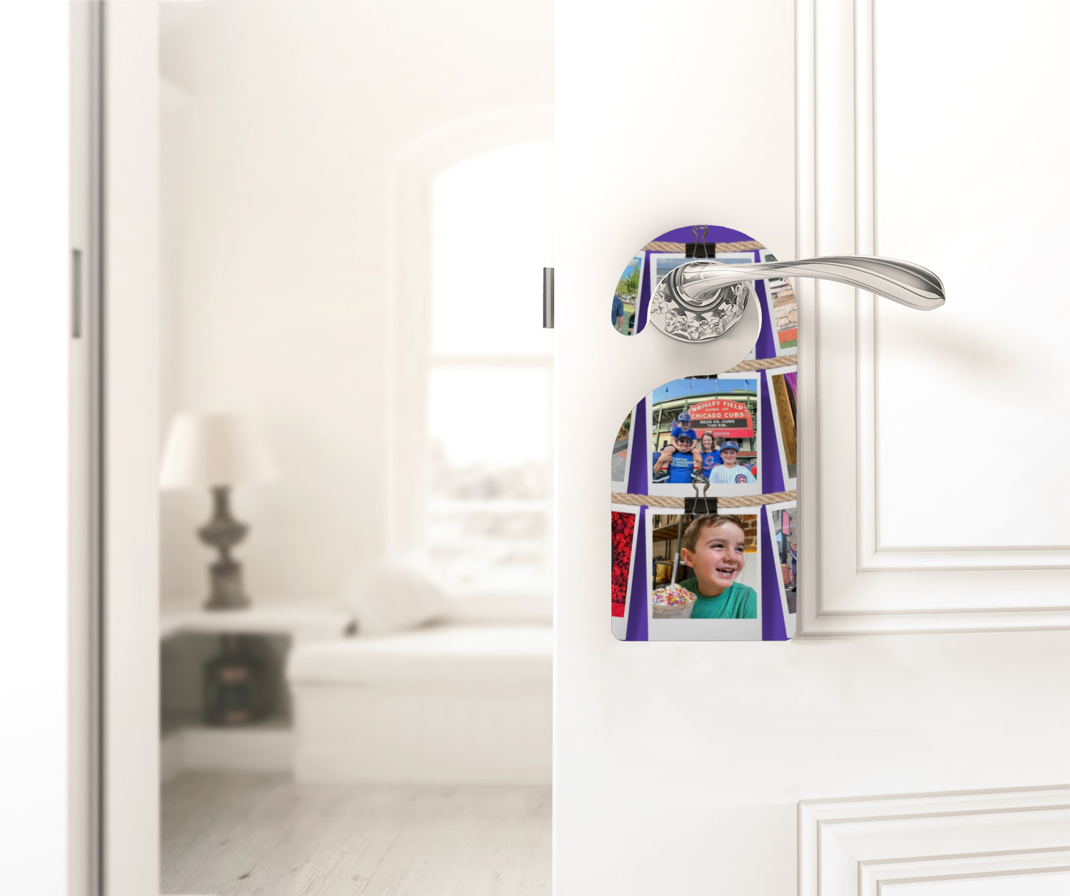 Decorate your door handles with one of our door hangers! These multi-purpose doorknob hangers can be used in a variety of situations; kids can use them to mark their rooms, parents can use them to keep privacy, and they can be used on the doors of nurseries to indicate when the baby is sleeping. Customize a few for some of the rooms in your house today! You could even give these as gifts; give one to the newlyweds in your life, or to a college student so they can use them in their dorm!