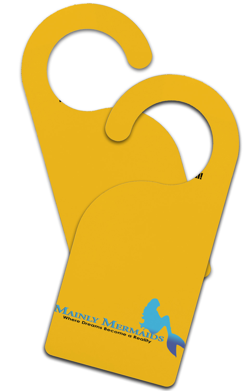 These door hanger signs are built to be durable enough for day-to-day use. Your customization is printed across the entire surface, beneath a glossy shine that makes your design really stand out. You can choose to have the same design on both faces of these door hang tags, or you can make the designs different, depending on your needs. The curved hook at the top of this personalized door hangers allows the tag to remain attached to the handle even when you close or open the door.