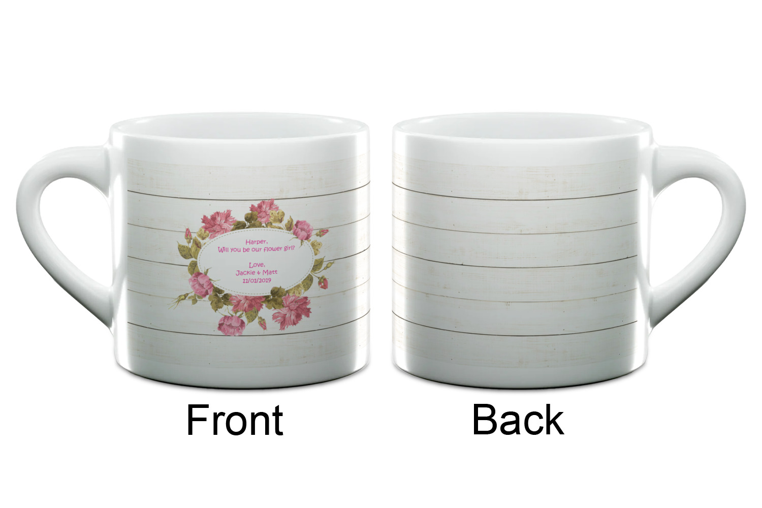 Pinkies out! Sip your favorite espresso with our personalized espresso cups! Our cute little espresso mugs are ideal for that morning shot of caffeine before you start your day! Make your mugs extra special by creating your own custom-designed espresso cup. Use our online design studio to customize designs, create your own, or upload a photo!