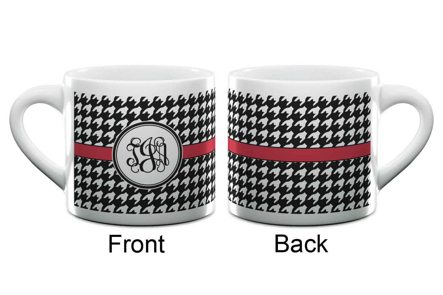 Each of our espresso mugs is a ceramic material sure to keep your drink warm. Personalize one cup for yourself, or order a set of 4! Its the perfect little gift for any coffee lover! We carry two sizes for you to personalize - 3 oz. (approx. 3.25" x 2.325" x 2.625") or 6 oz. (approx. 4" x 2.9" x 2.9"). Our 3 oz. mug is perfect for that single shot espresso while our 6 oz. mug can be your next favorite cappuccino cup holding two shots of espresso!