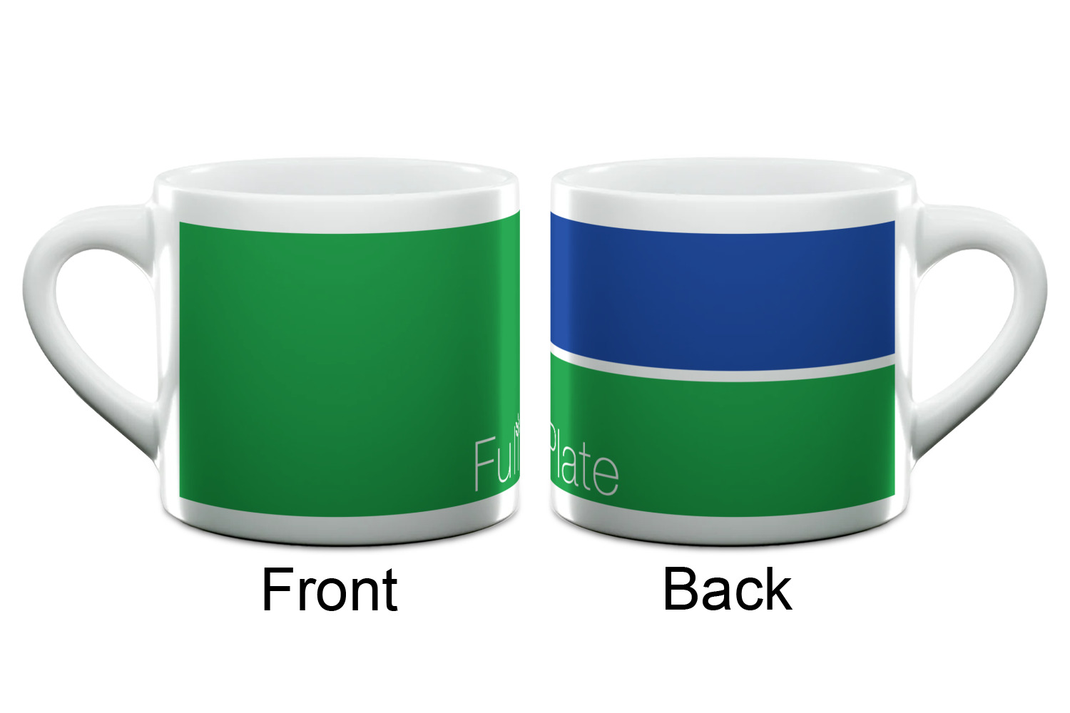 Each of our espresso mugs is a ceramic material sure to keep your drink warm. Personalize one cup for yourself, or order a set of 4! Its the perfect little gift for any coffee lover! We carry two sizes for you to personalize - 3 oz. (approx. 3.25" x 2.325" x 2.625") or 6 oz. (approx. 4" x 2.9" x 2.9"). Our 3 oz. mug is perfect for that single shot espresso while our 6 oz. mug can be your next favorite cappuccino cup holding two shots of espresso!