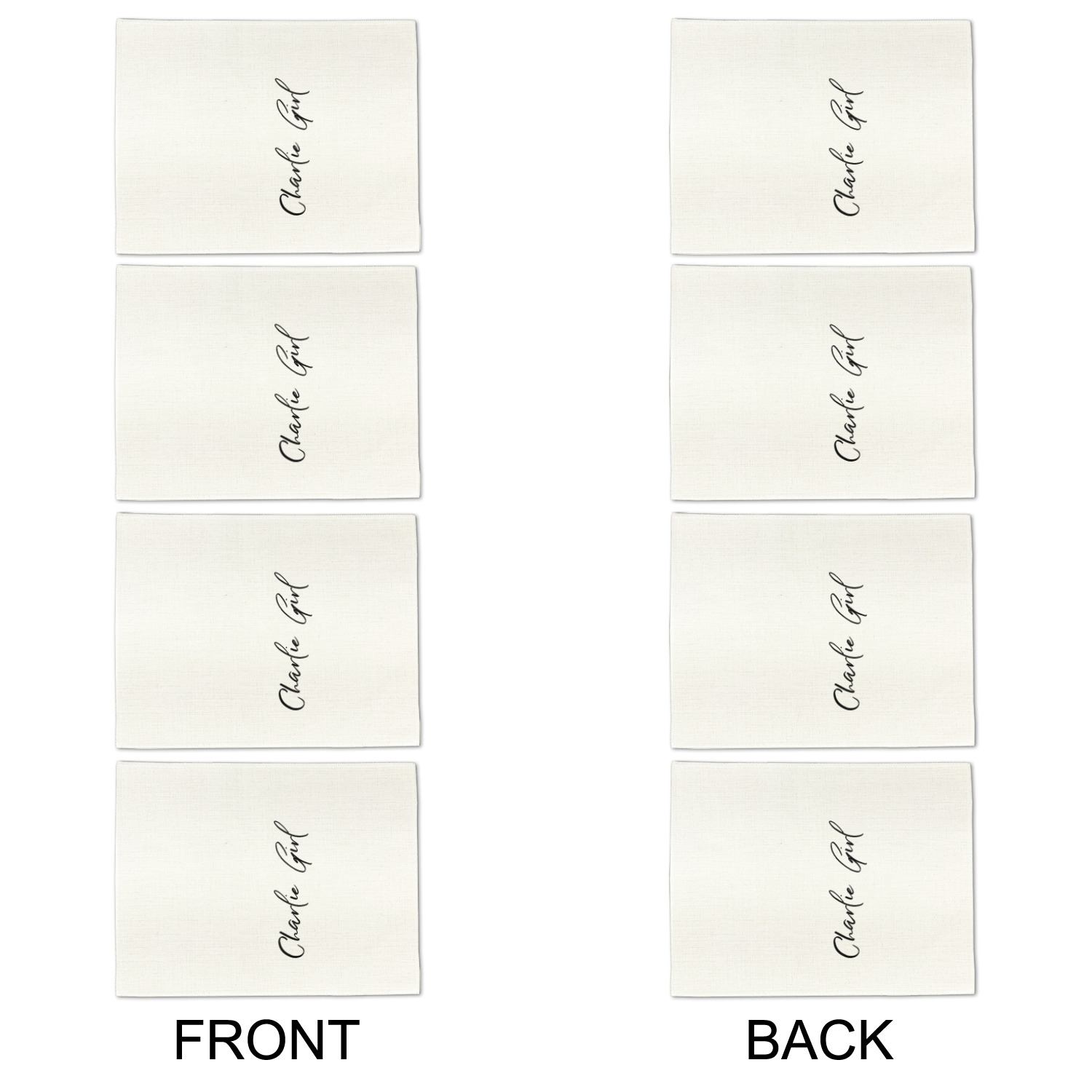 Measuring approximately 12 inches by 15.5 inches, these customized linen placemats are large enough to fit your plates, utensils, and drinking glass easily without crowding your table arrangements.