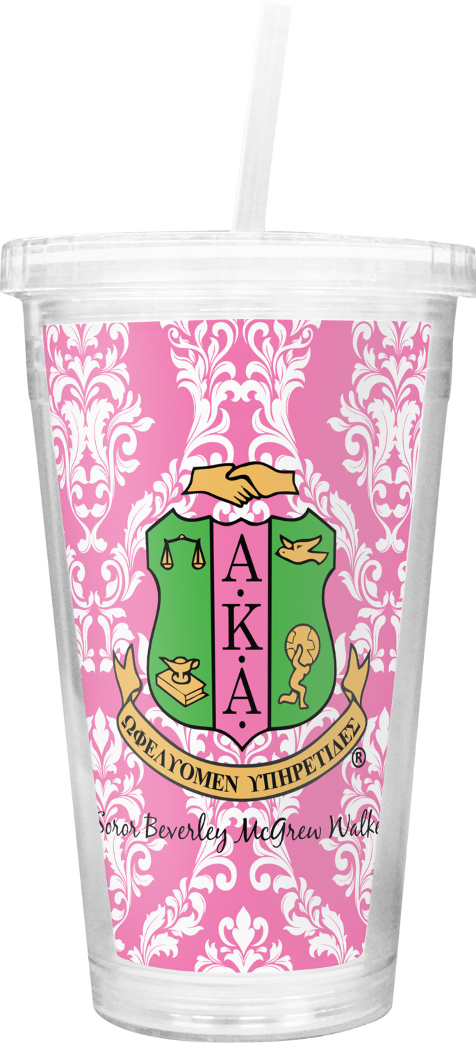 These tumblers are customized for you with a printed insert between the two walls of the cup. The lid screws on tight and helps to keep your drink cold.