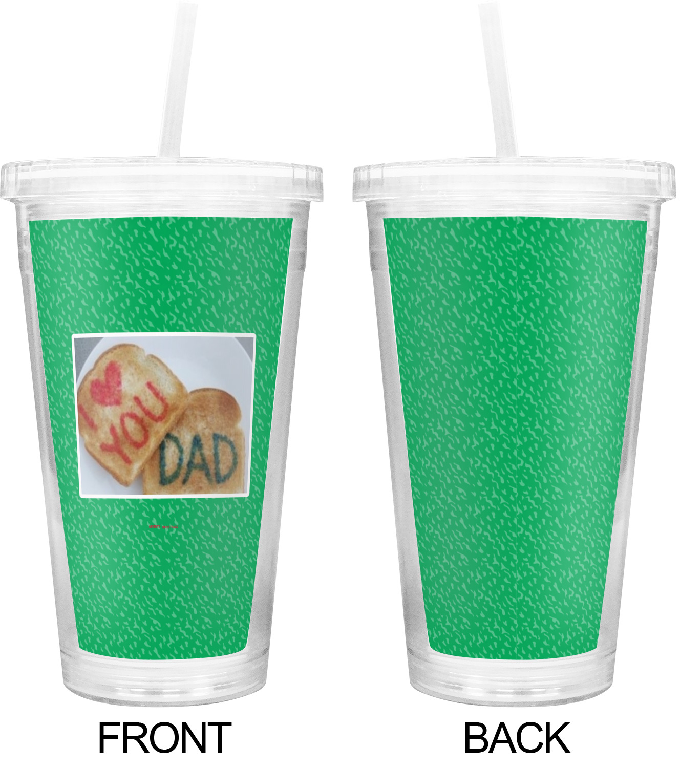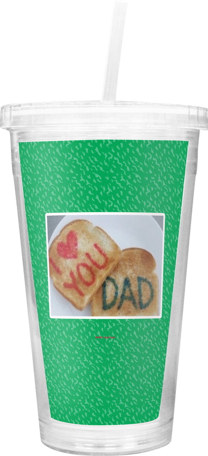 These tumblers are customized for you with a printed insert between the two walls of the cup. The lid screws on tight and helps to keep your drink cold.